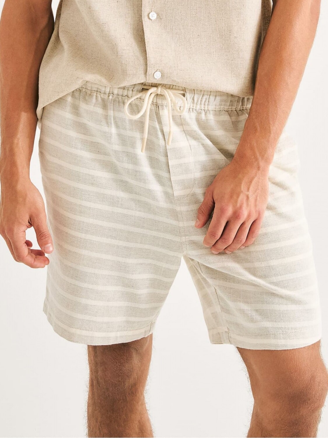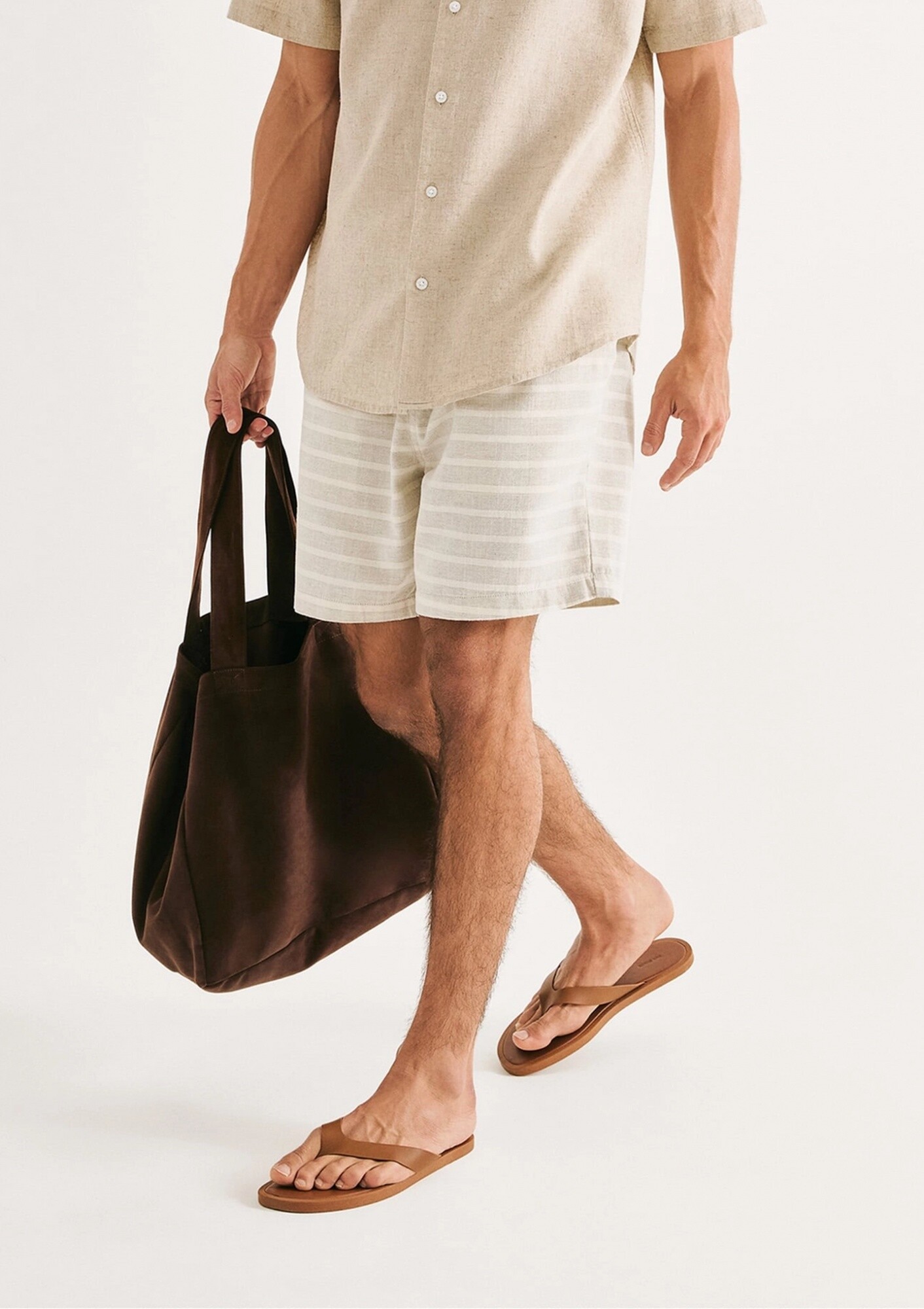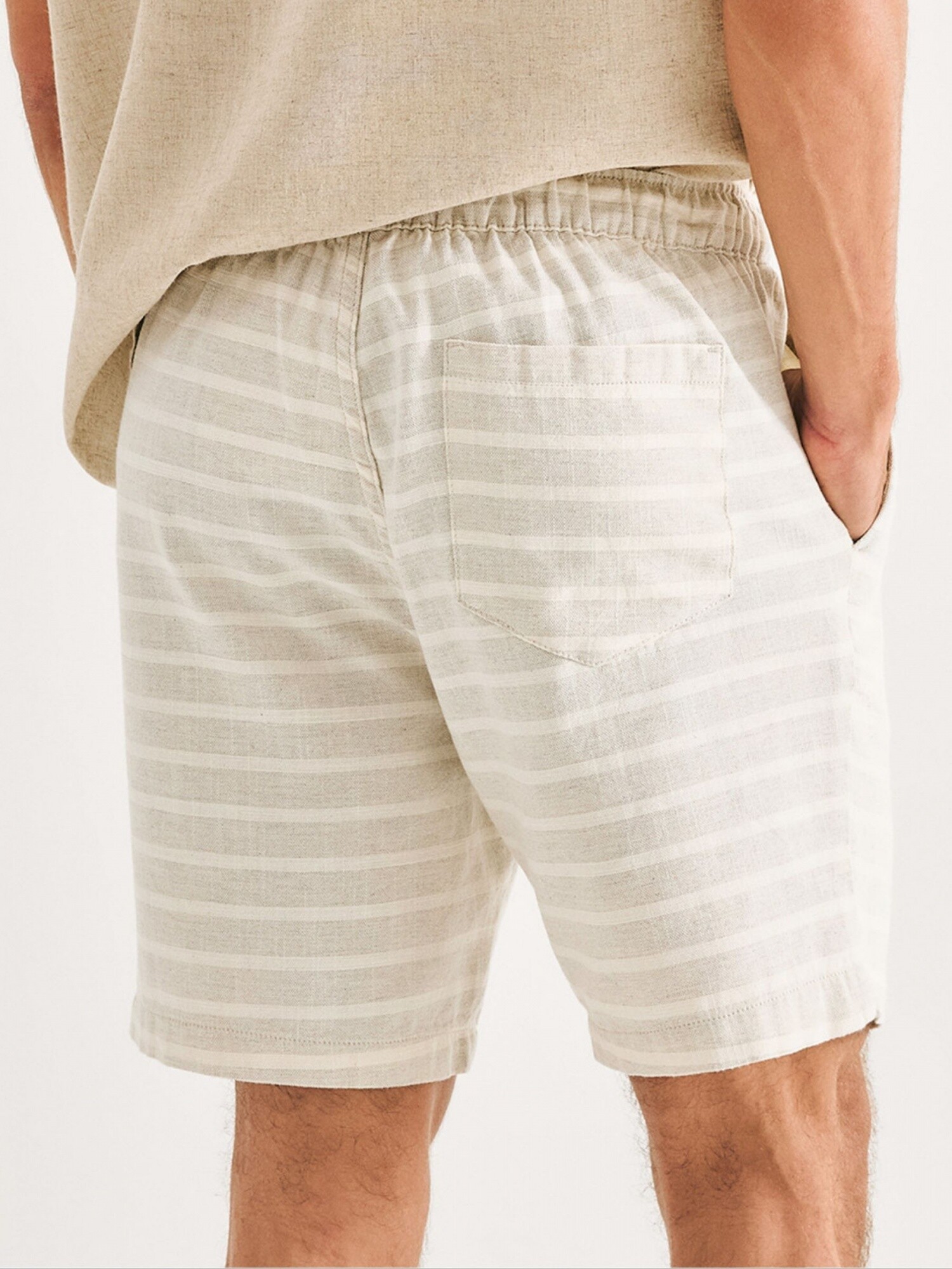 BERMUDA DE RAYAS CON TELA TEXTURIZADA - BEIGE