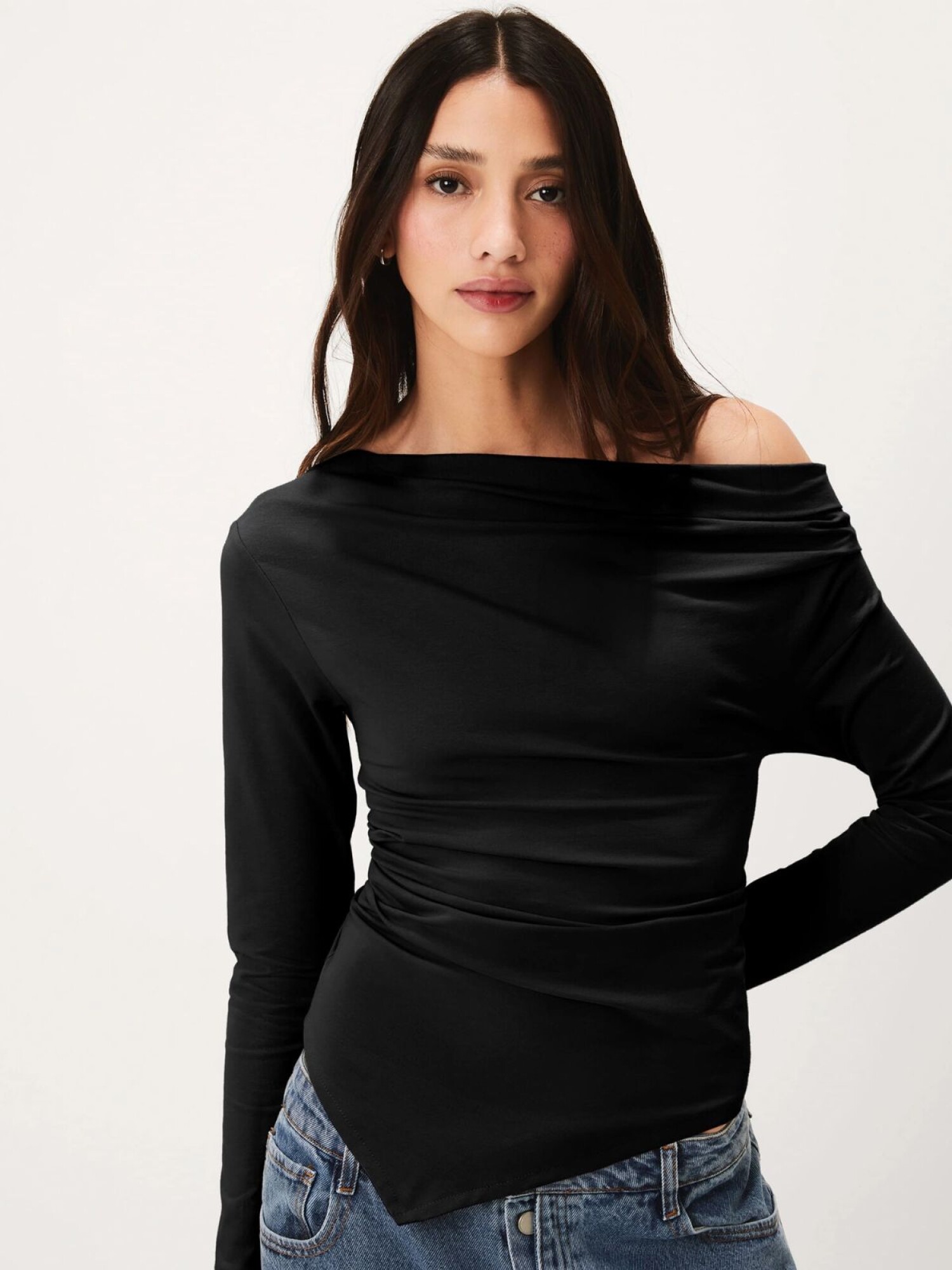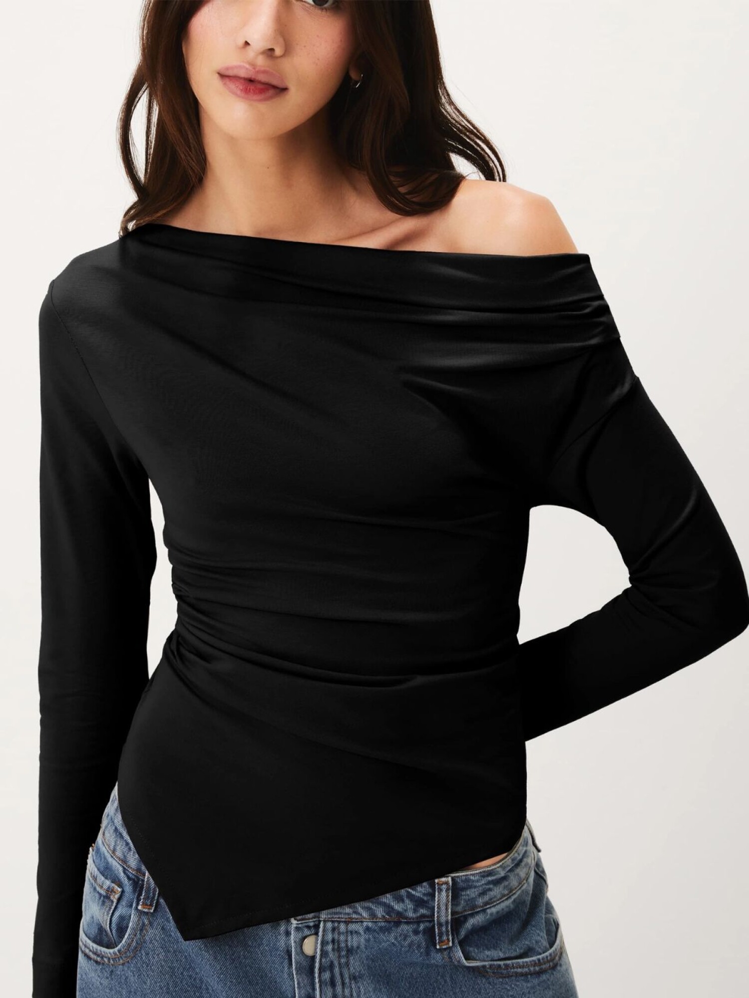 BLUSA ASIMÉTRICA DE MANGA LARGA - NEGRO