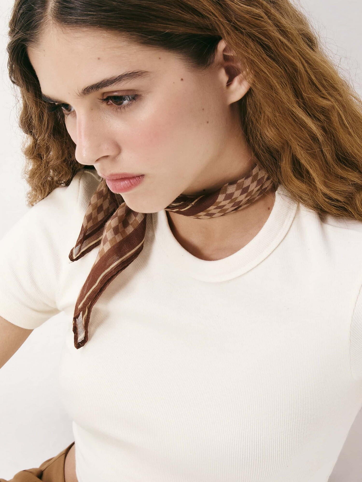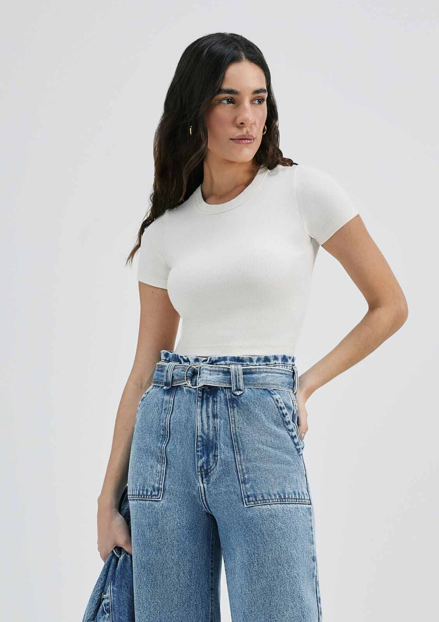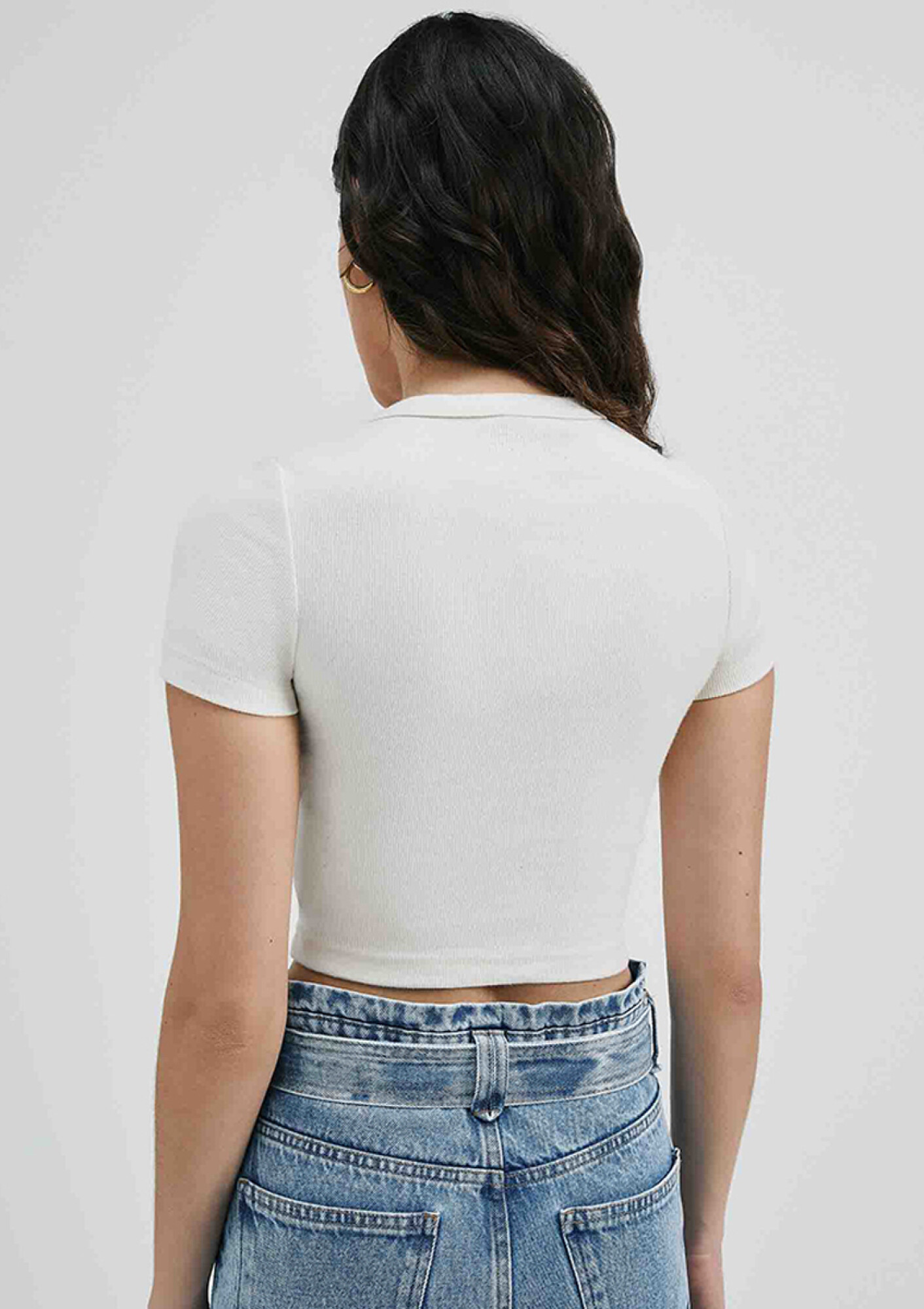 BLUSA CROPPED EN TELA ACANALADA - BEIGE
