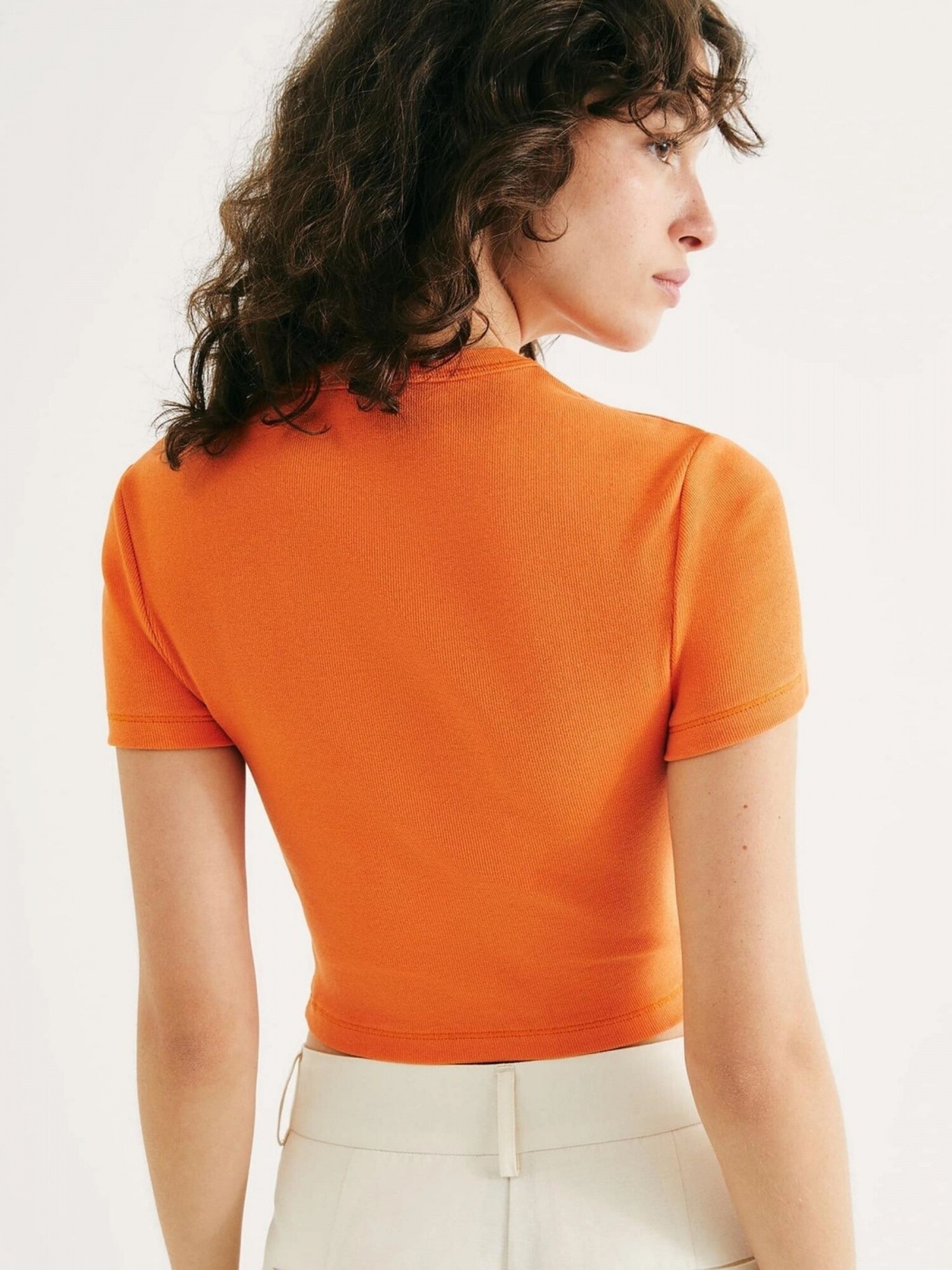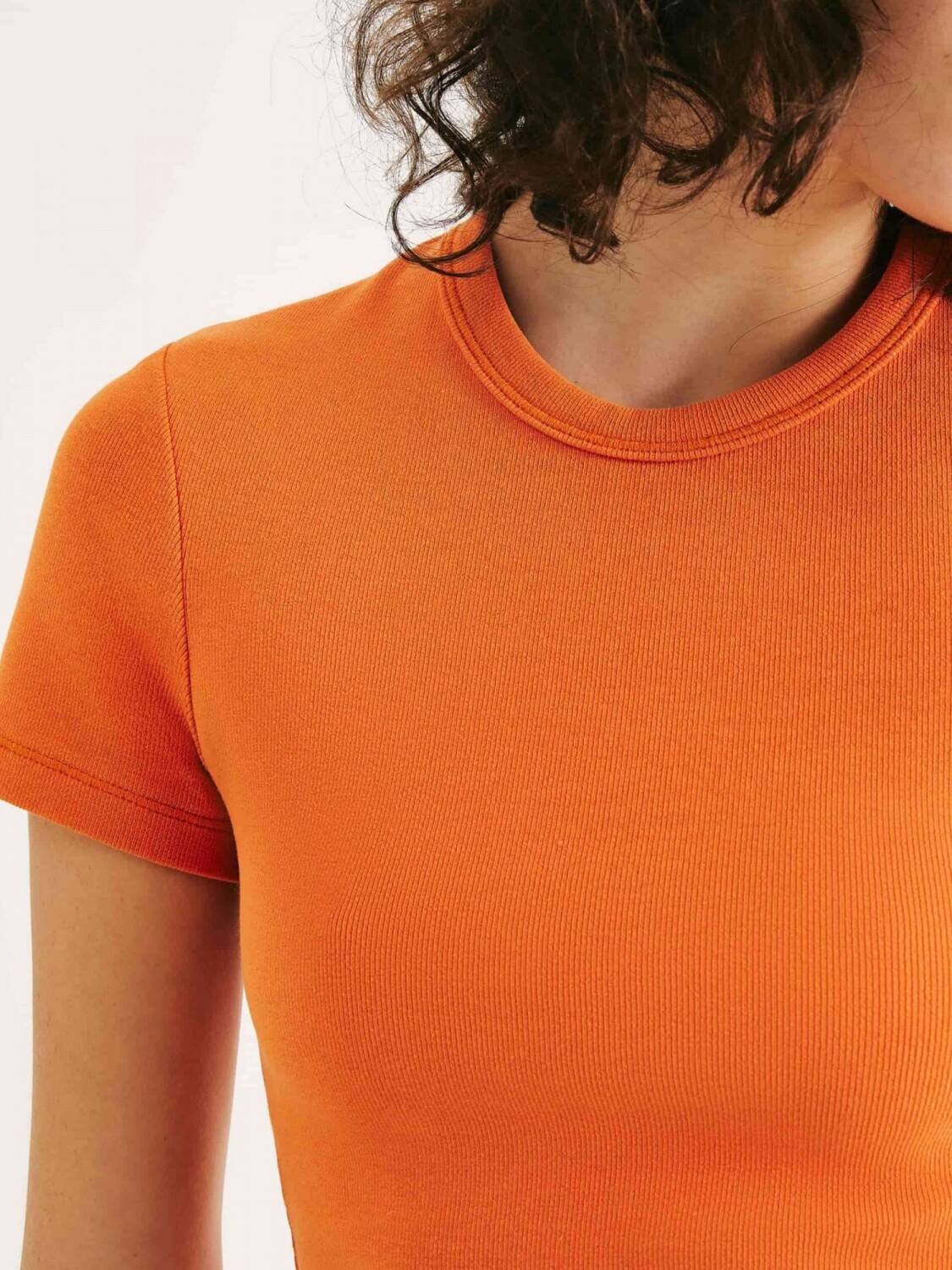 BLUSA CROPPED EN TELA ACANALADA - NARANJA