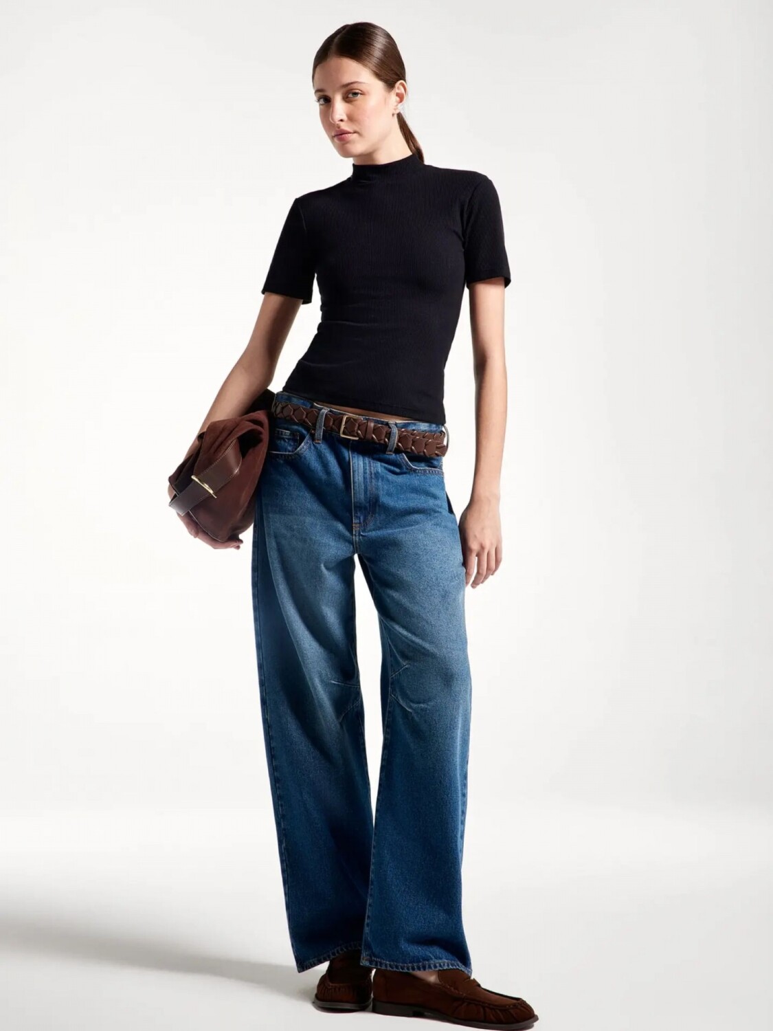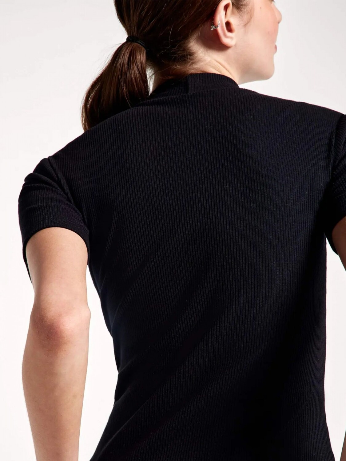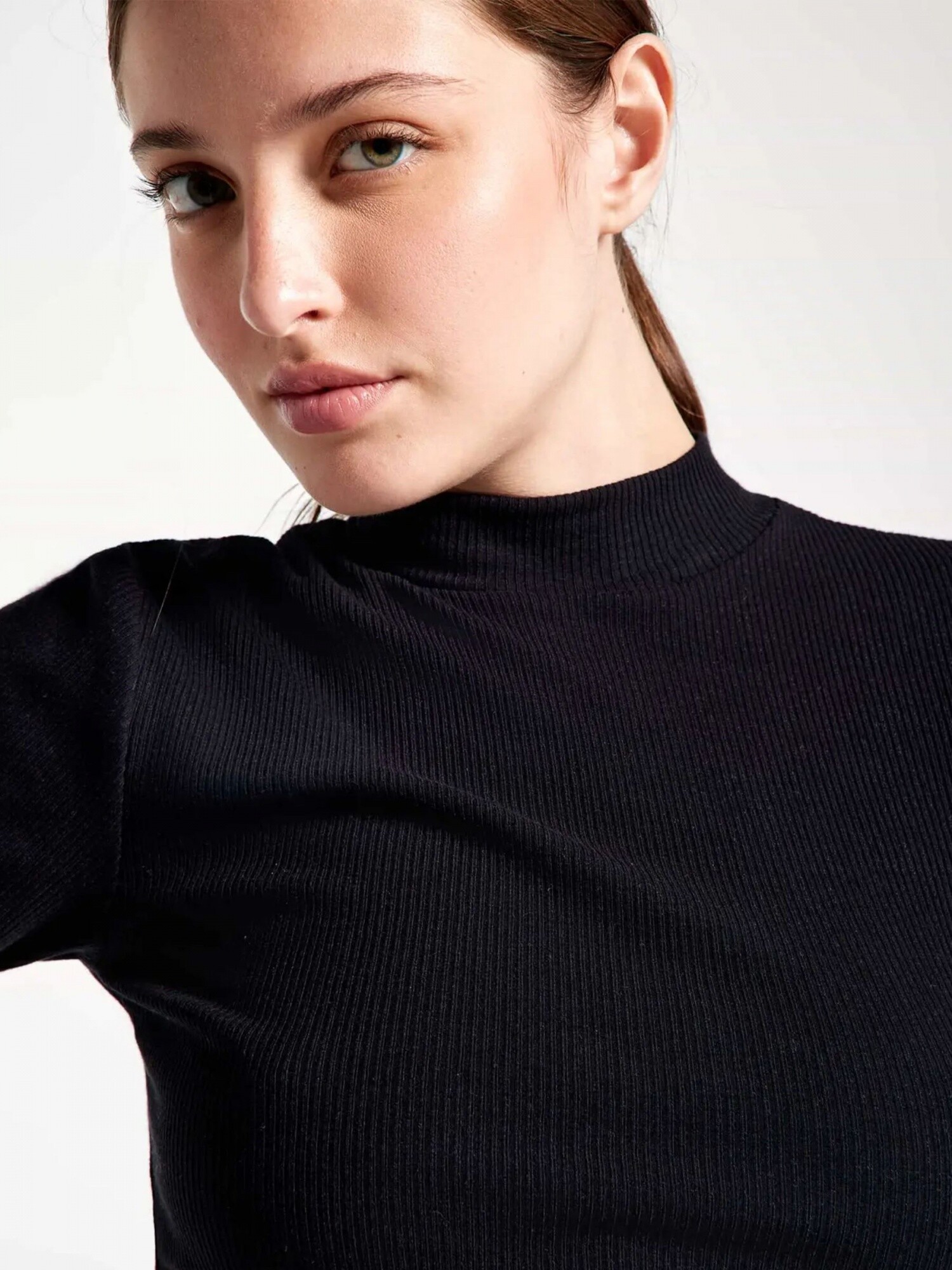 BLUSA DE CUELLO ALTO EN TELA ACANALADA - NEGRO