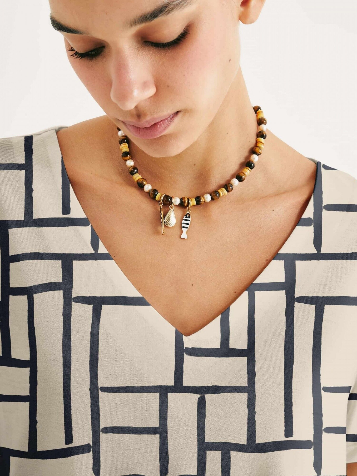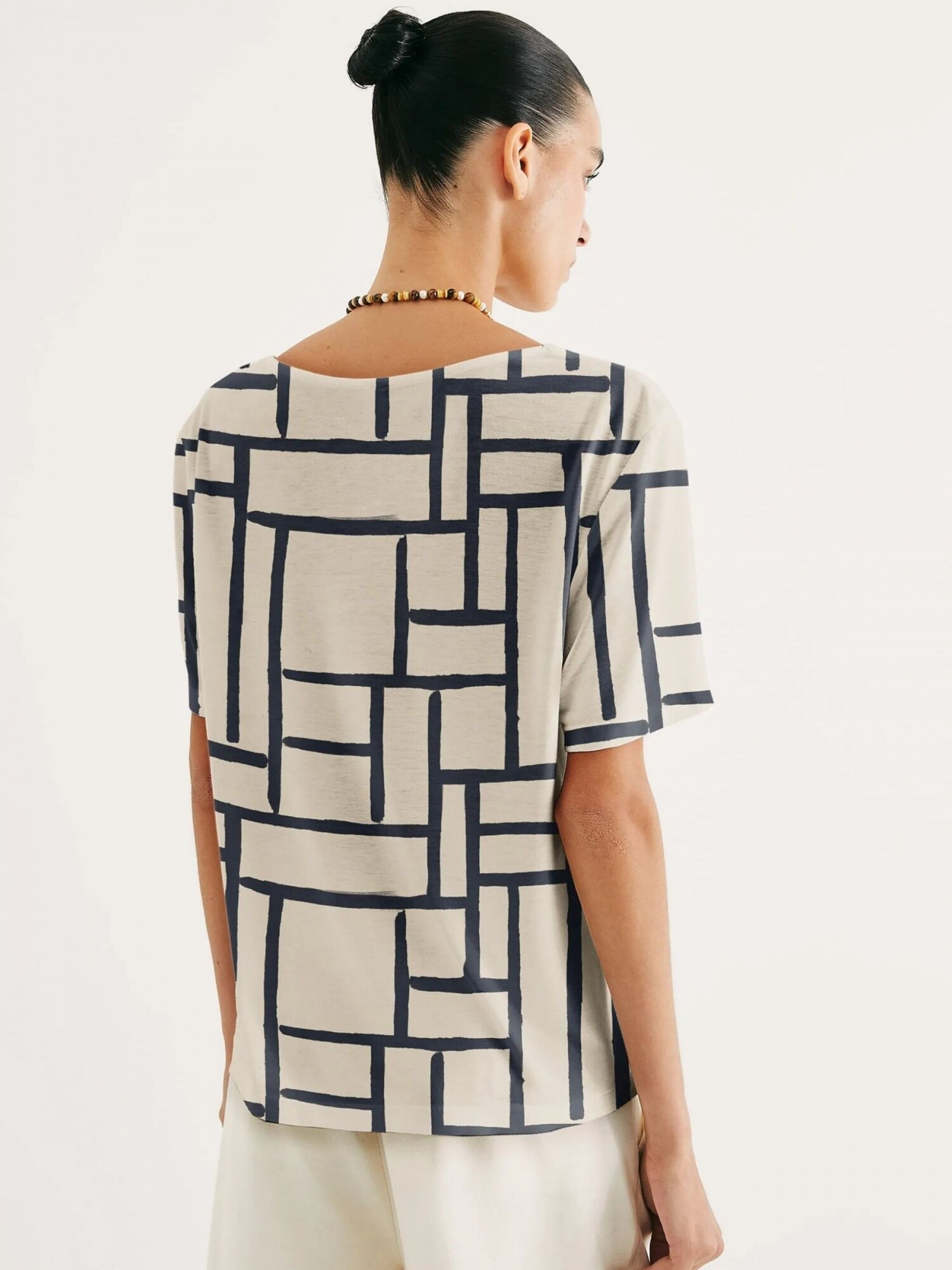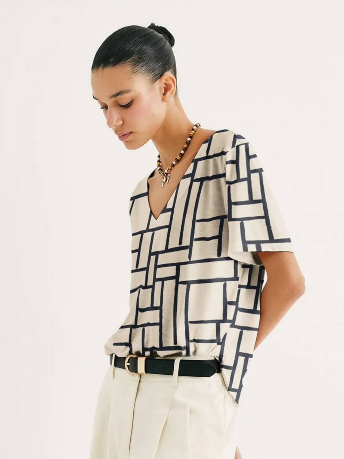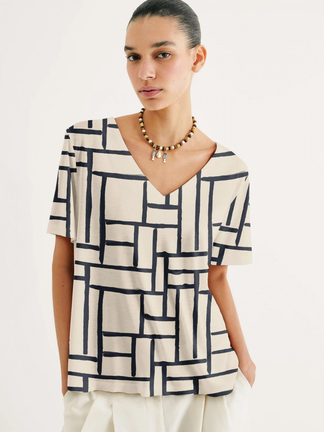 BLUSA DE CUELLO EN V CON ESTAMPADO - BLANCO