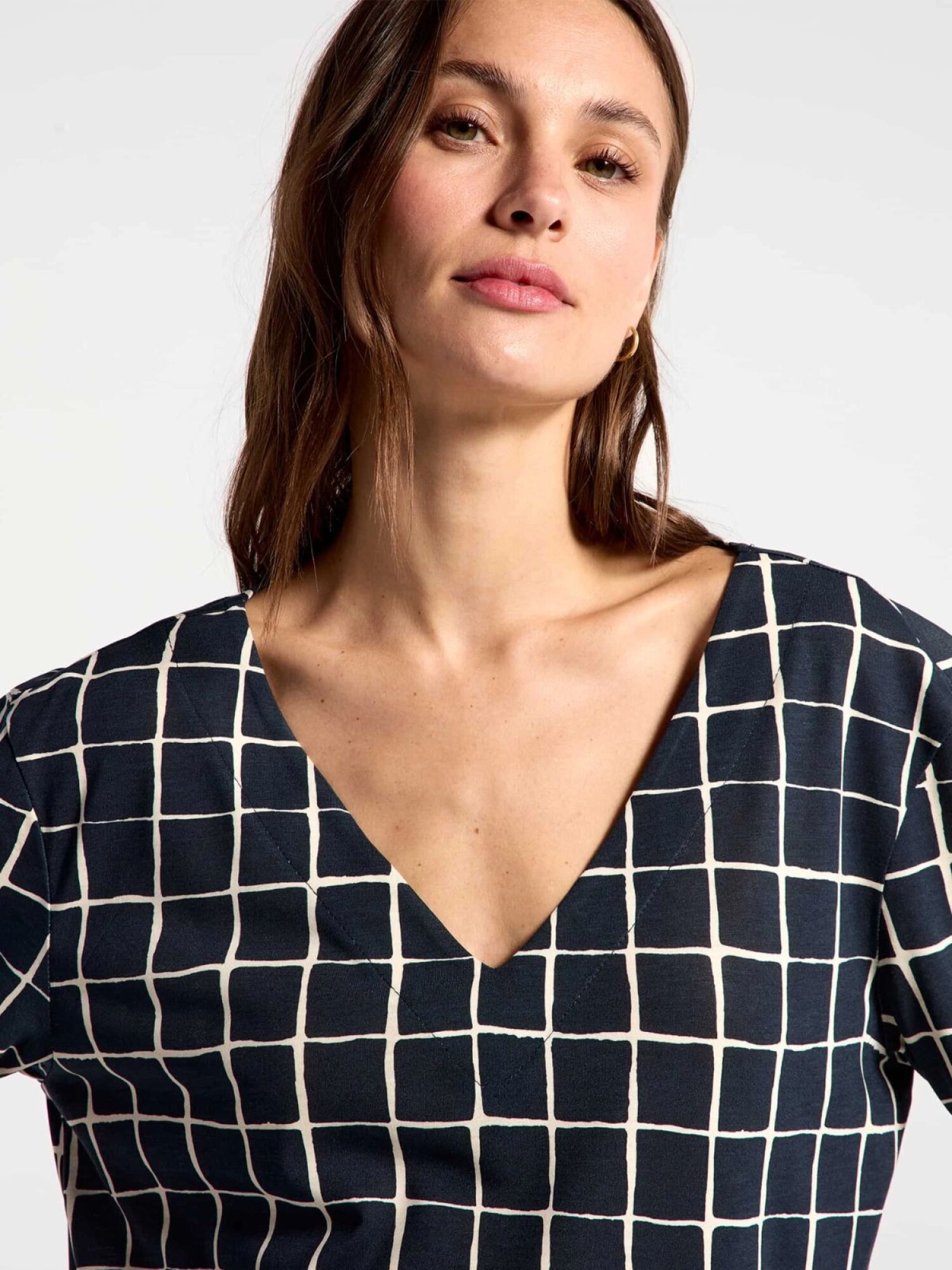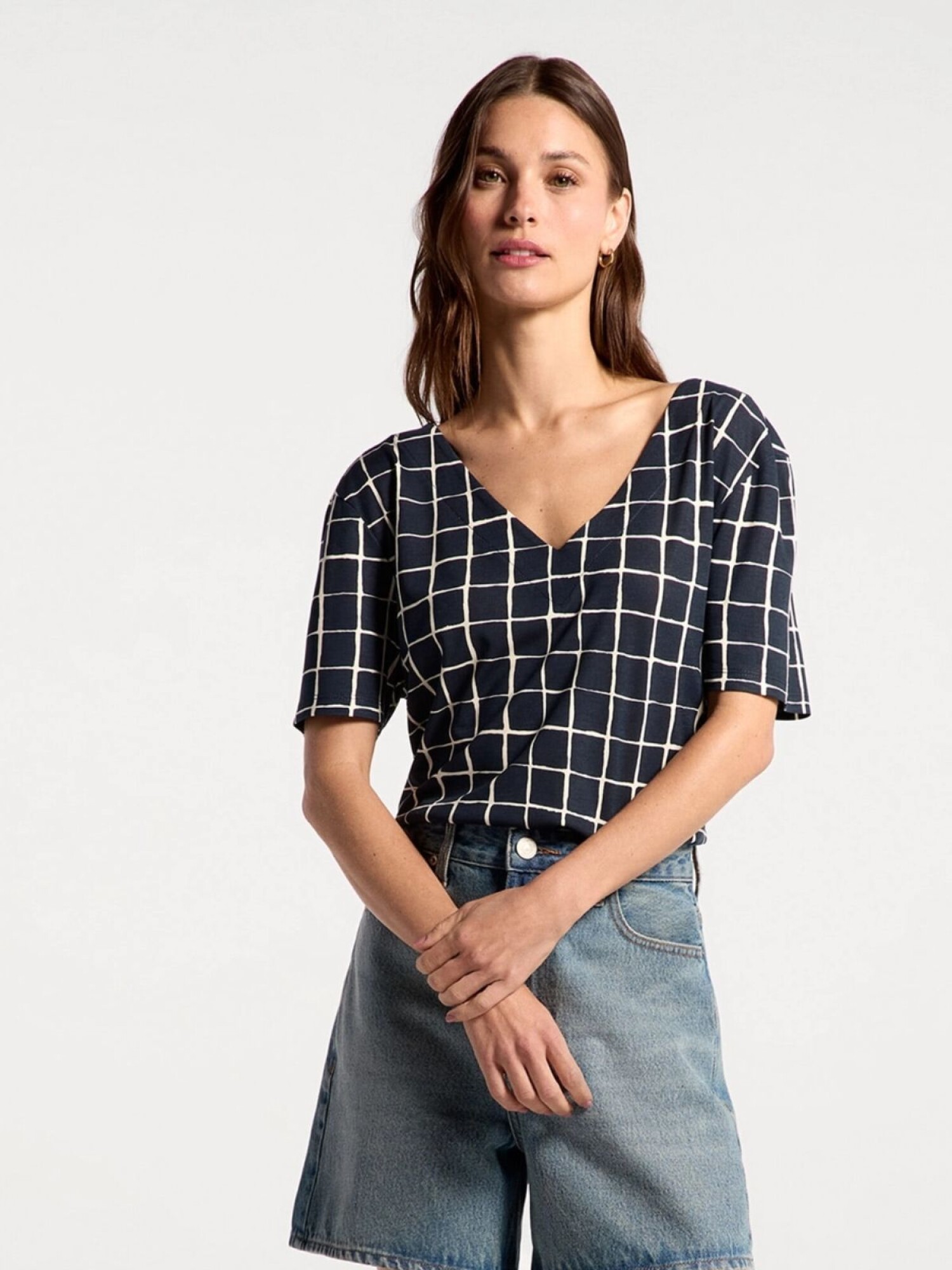 BLUSA DE CUELLO EN V CON ESTAMPADO - BORDEAUX