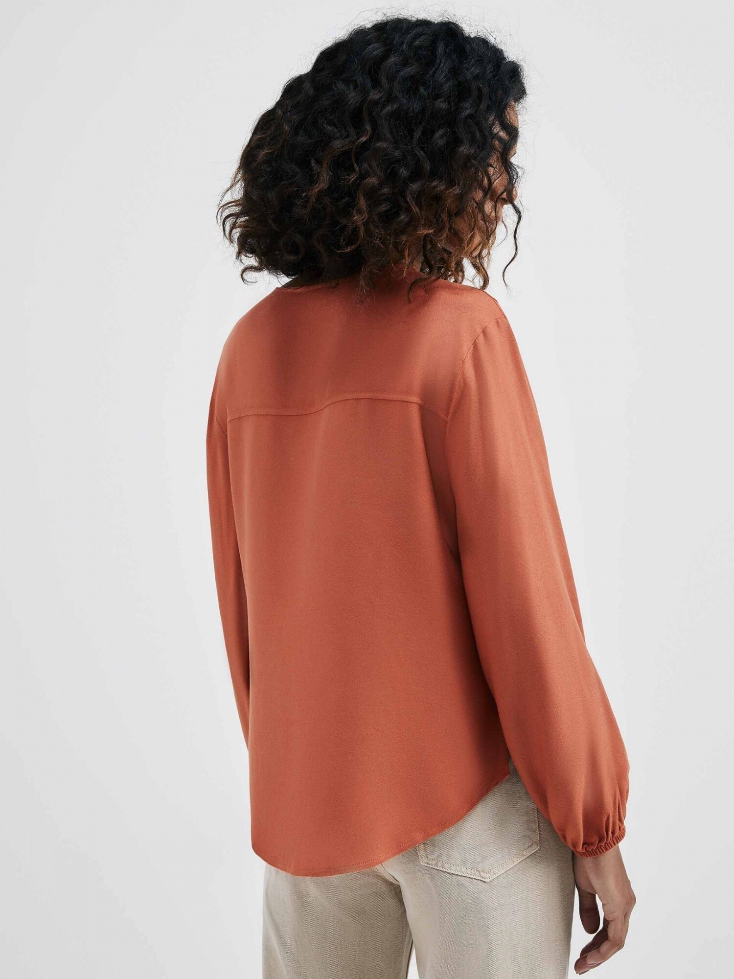 BLUSA MANGA LARGA CON ESCOTE EN V - MARRÓN