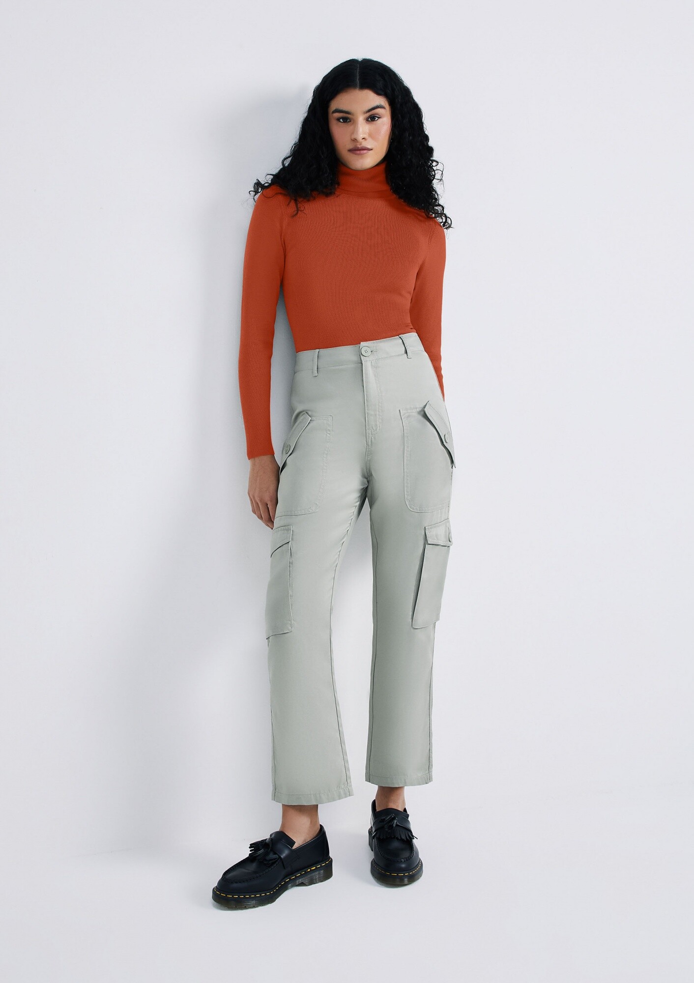 BLUSA MANGA LARGA CUELLO ALTO - NARANJA