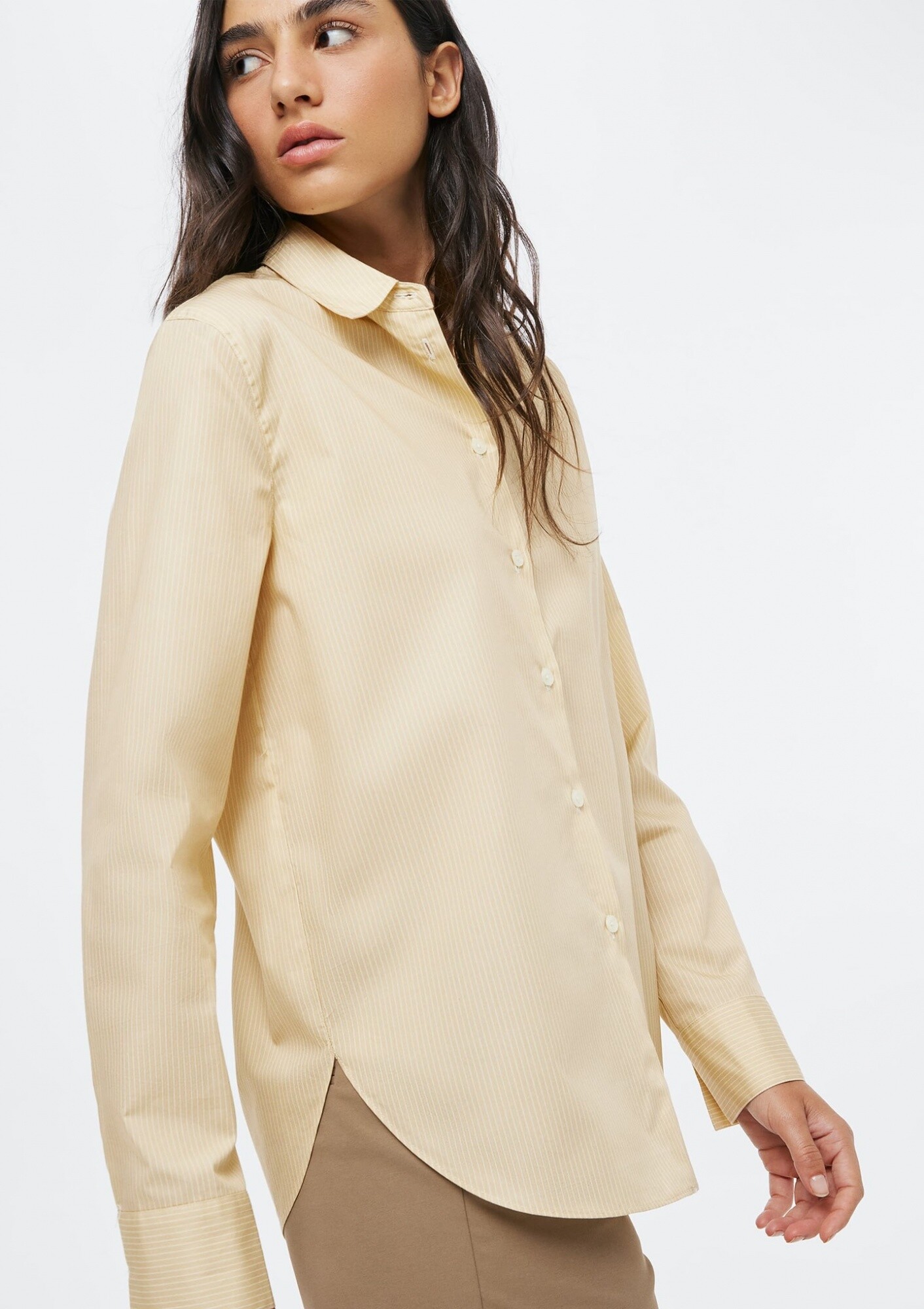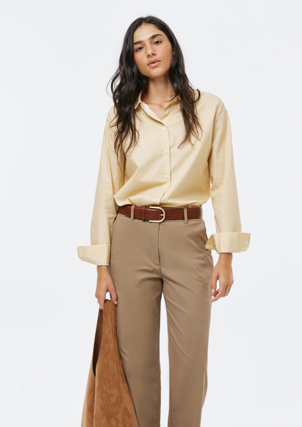 CAMISA BÁSICA A RAYAS - BEIGE - AMARILLO