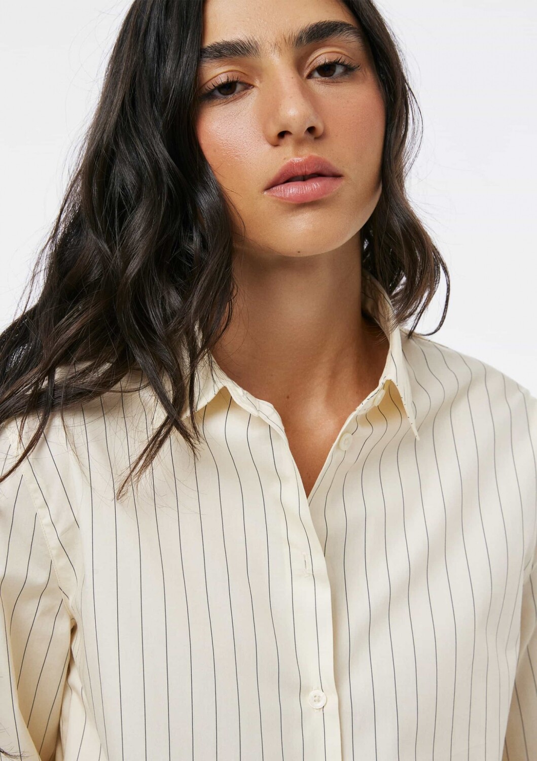 CAMISA BÁSICA A RAYAS - BEIGE - BEIGE