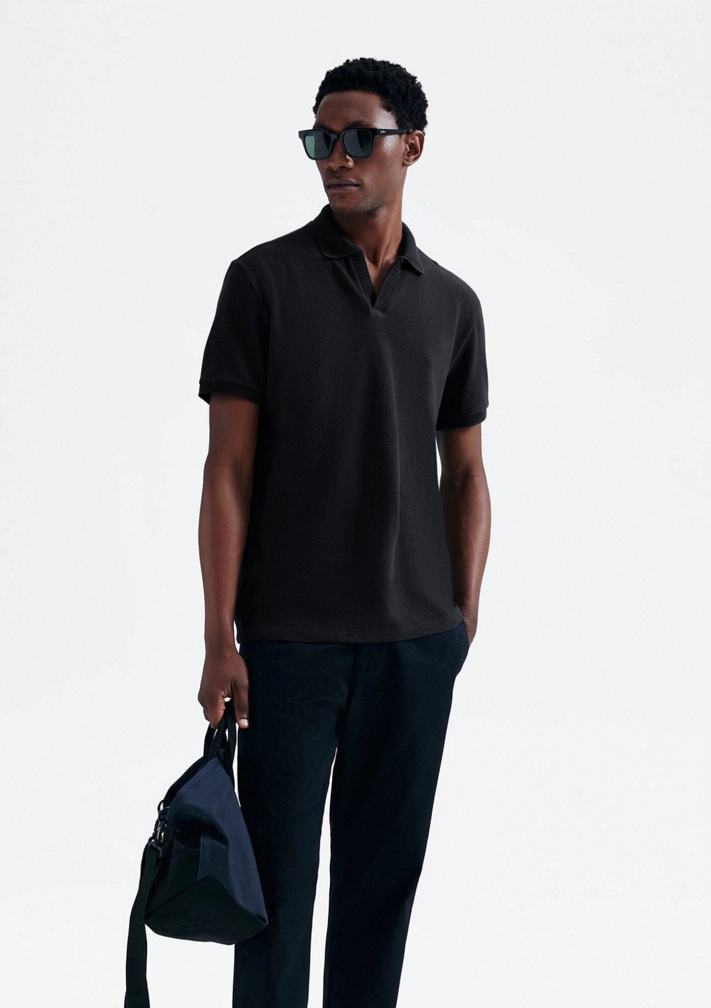 CAMISA CON CUELLO Y TELA TEXTURIZADA - NEGRO