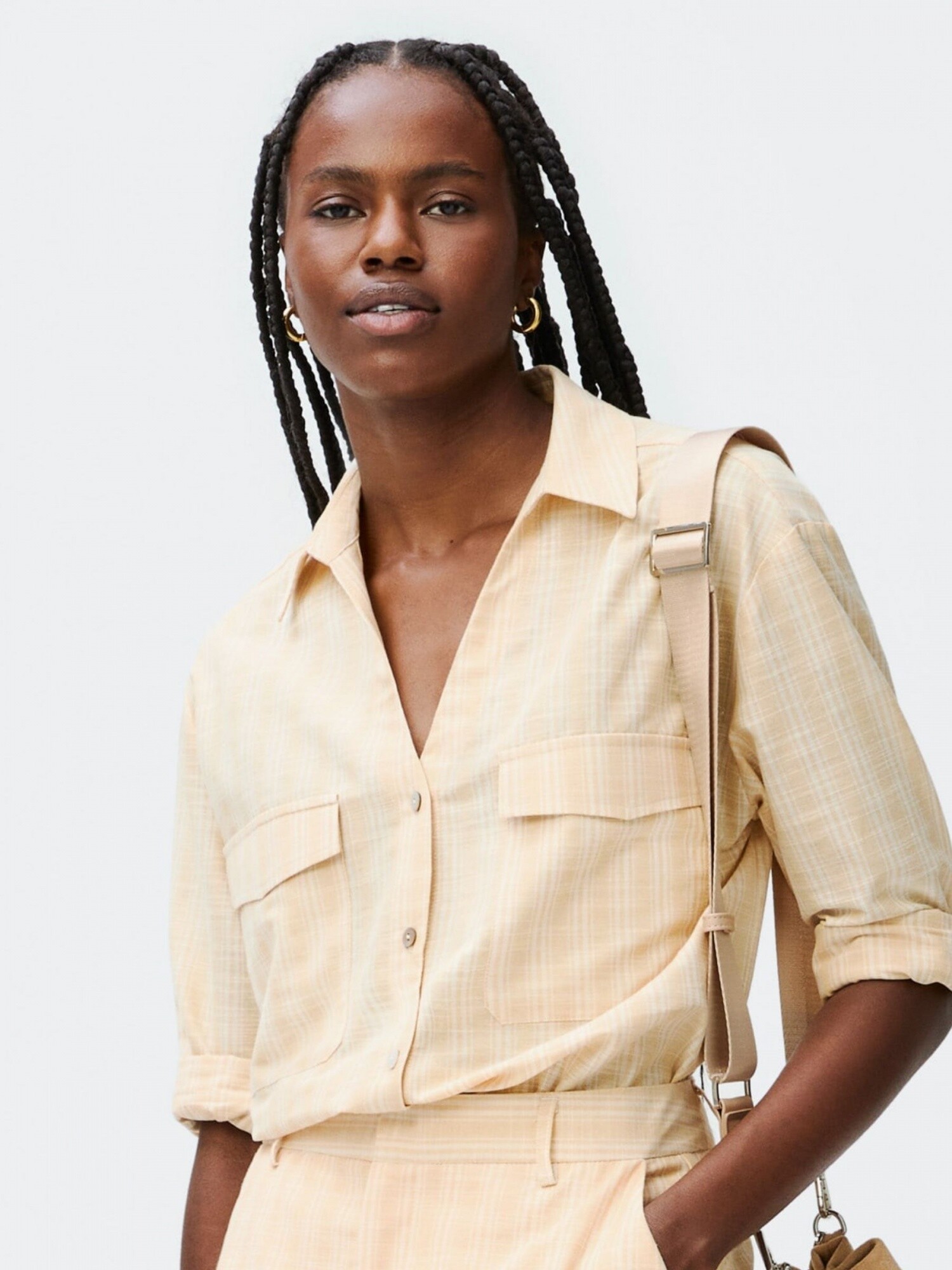 CAMISA MANGA LARGA CON ESTAMPADO - NARANJA