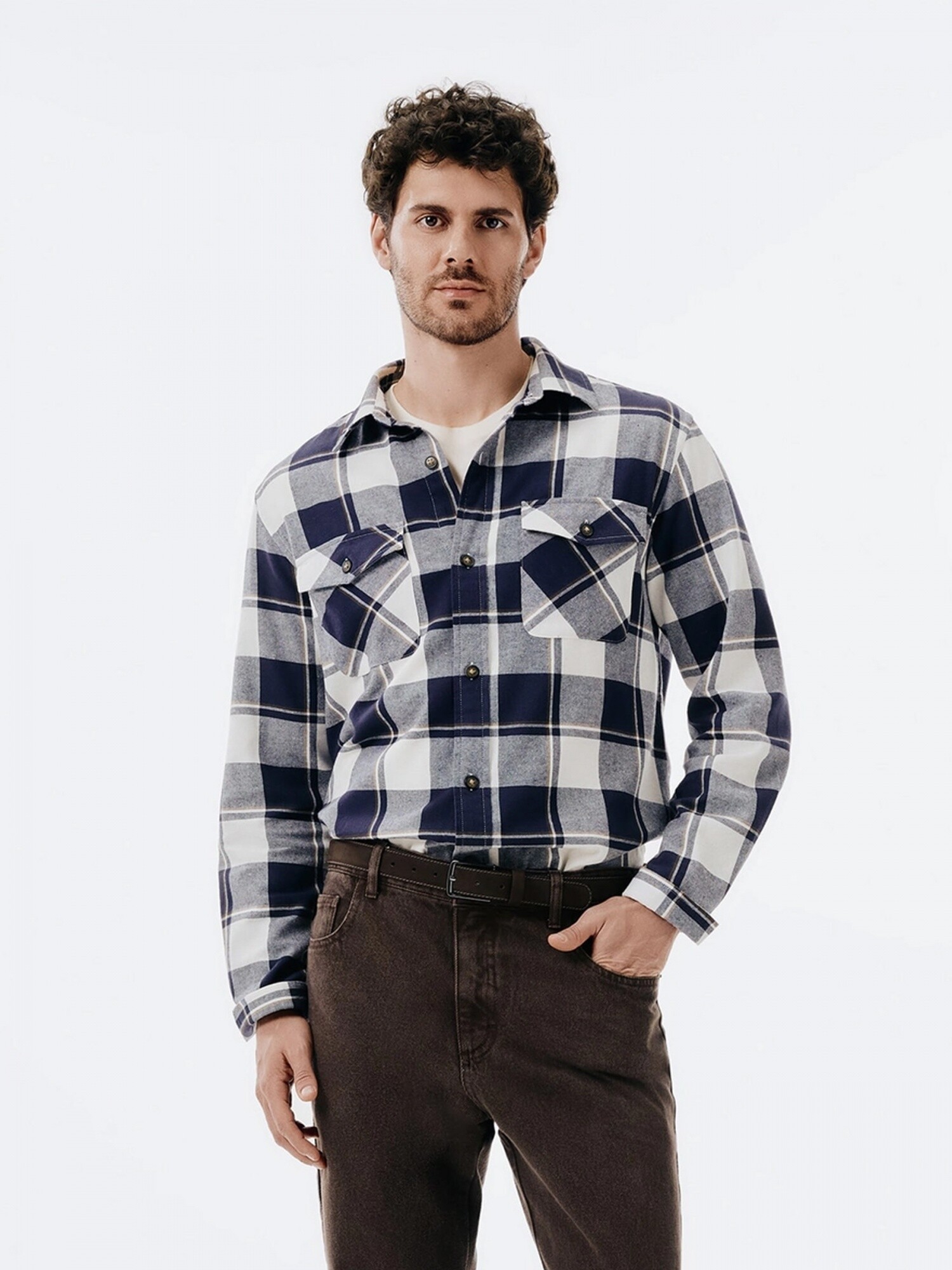 CAMISA MANGA LARGA DE RAYAS - AZUL