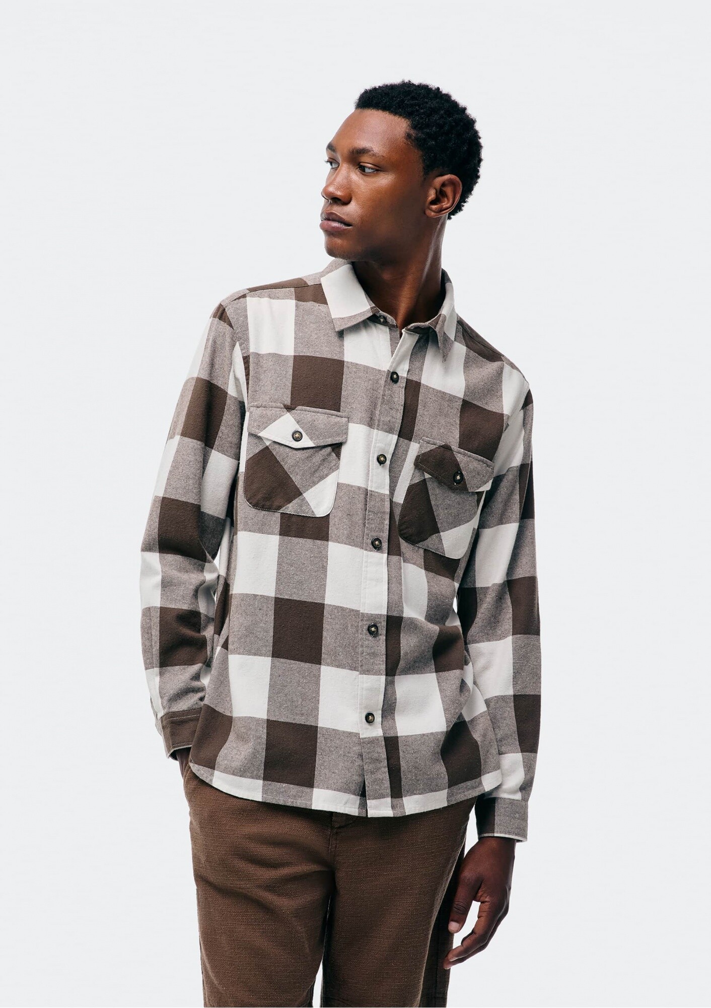 CAMISA MANGA LARGA DE RAYAS - MARRÓN