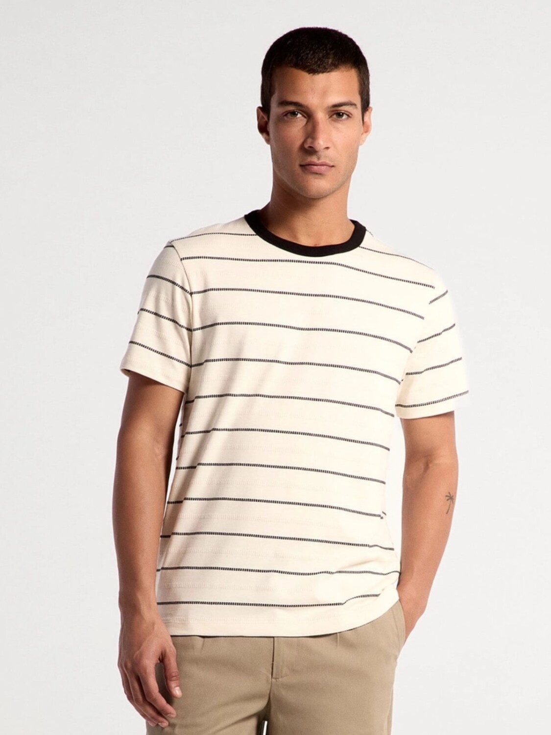 CAMISETA A RAYAS MODELO REGULAR - BEIGE