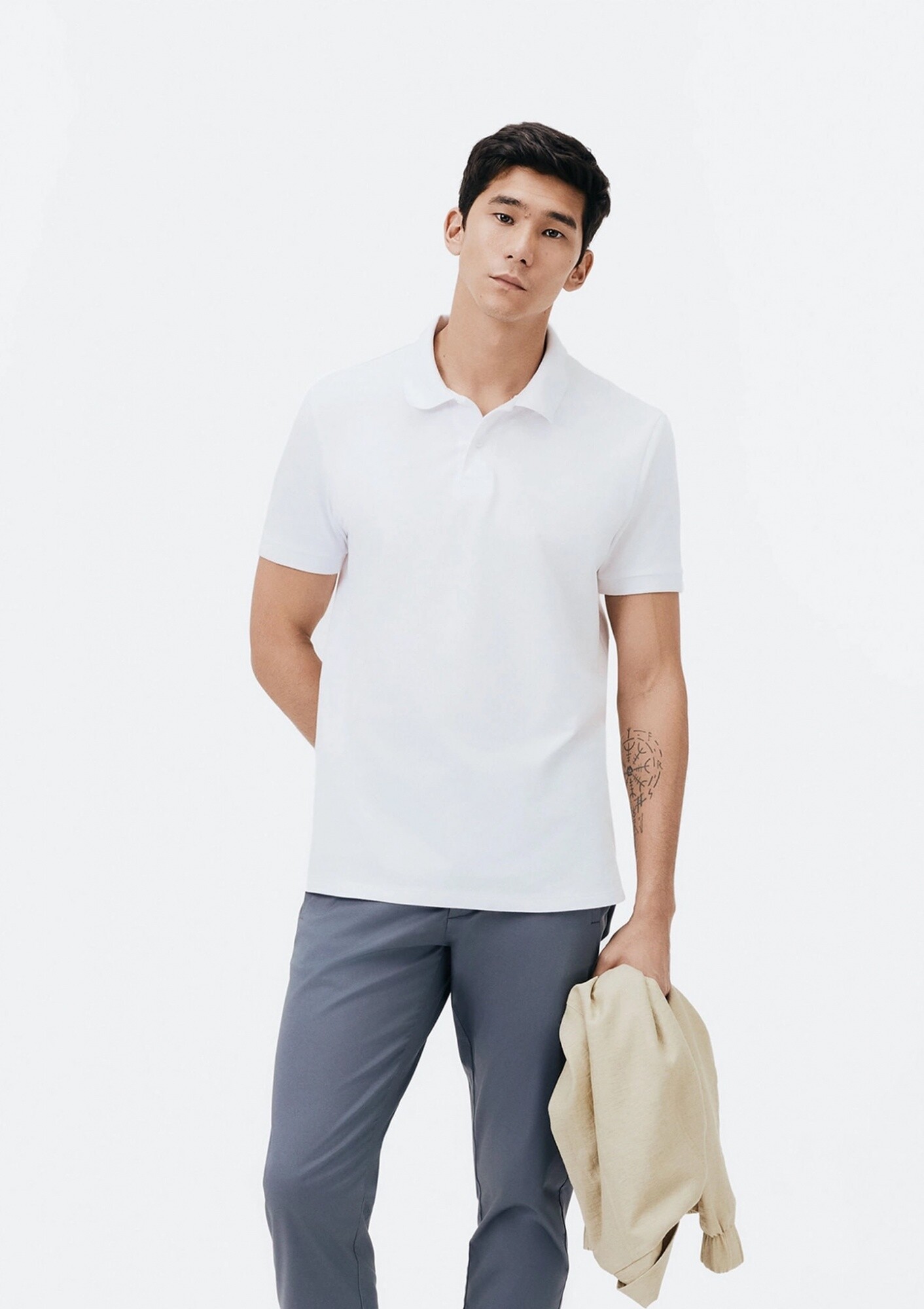 CAMISETA BÁSICA CON CUELLO - BLANCO