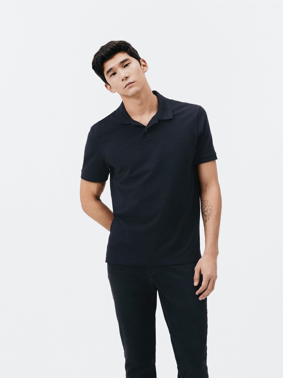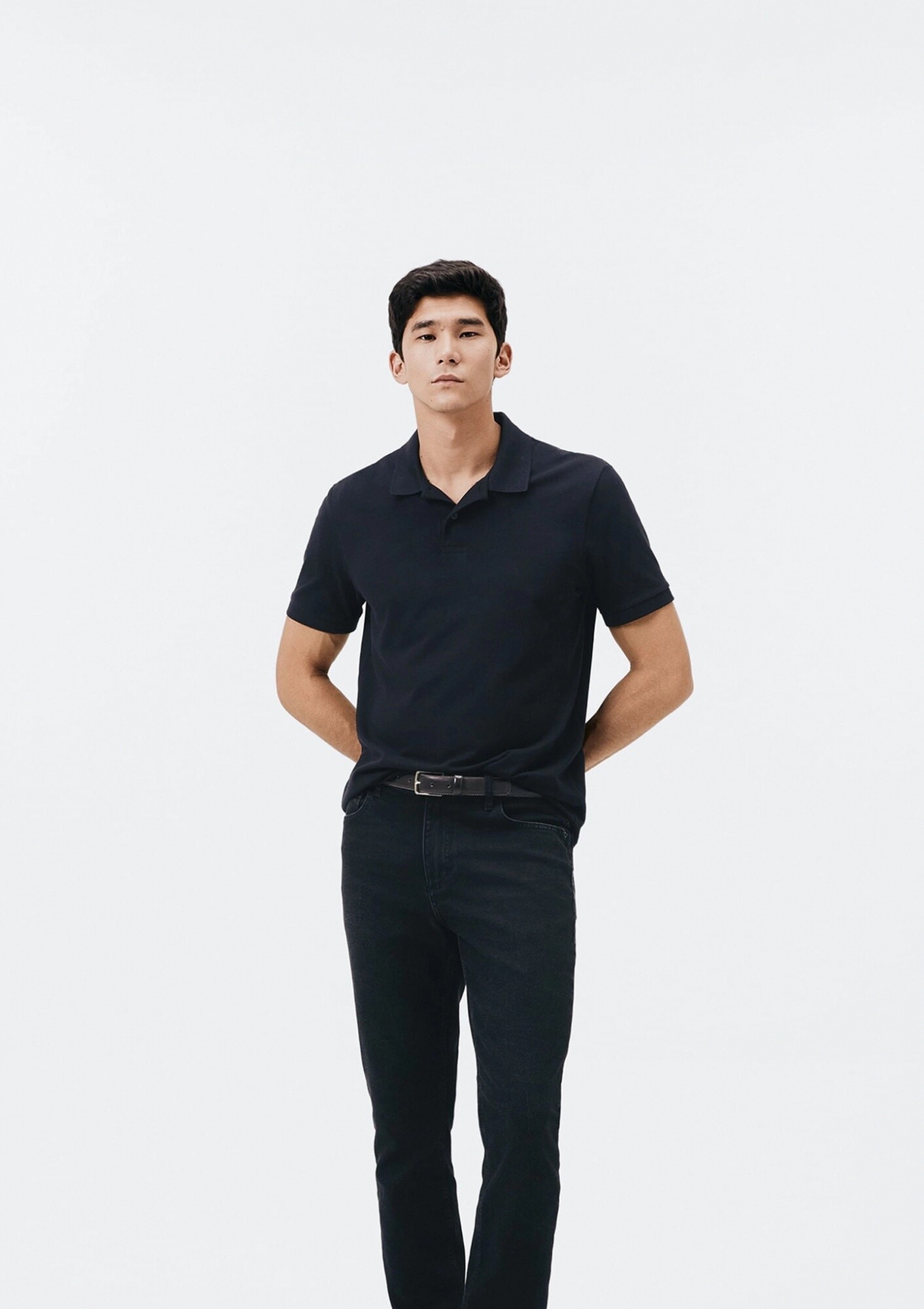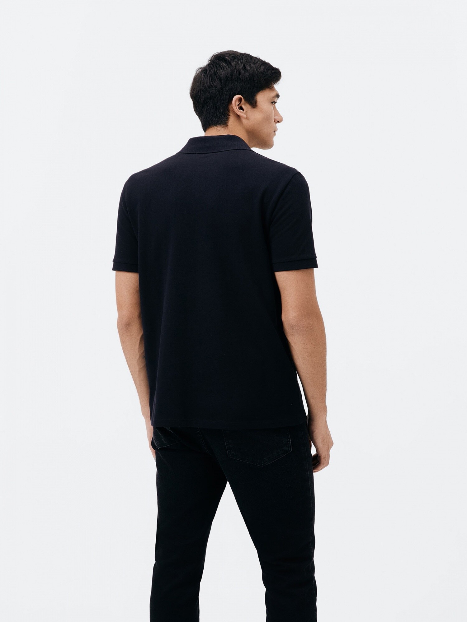 CAMISETA BÁSICA CON CUELLO - NEGRO