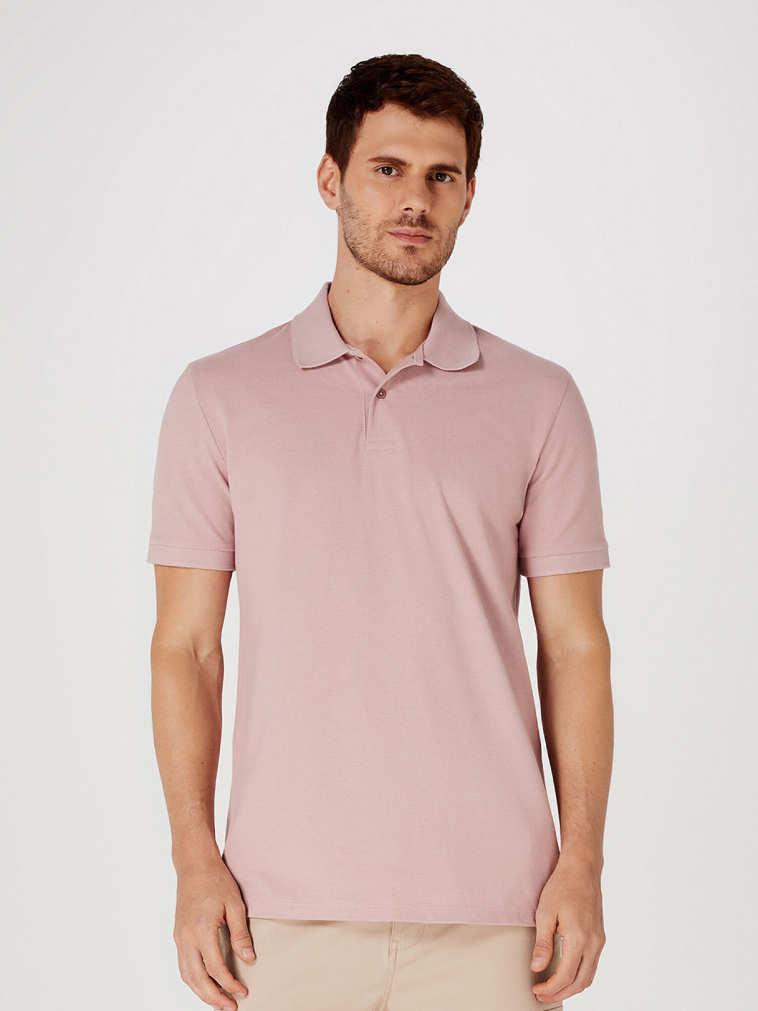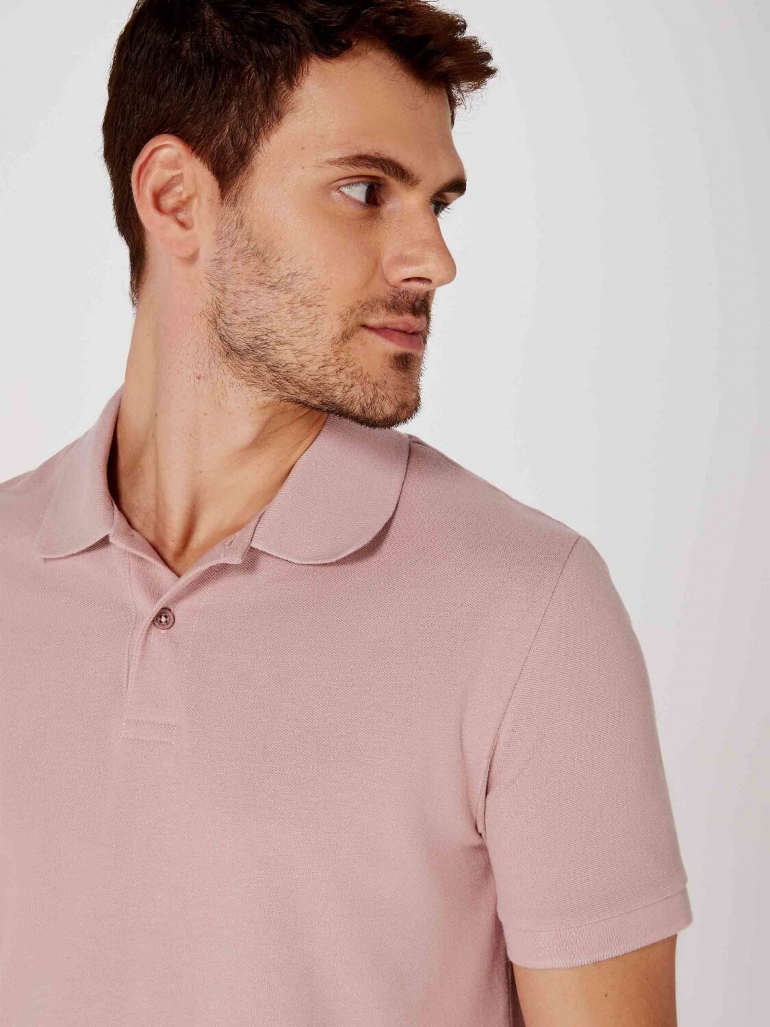 CAMISETA BÁSICA CON CUELLO - ROSA