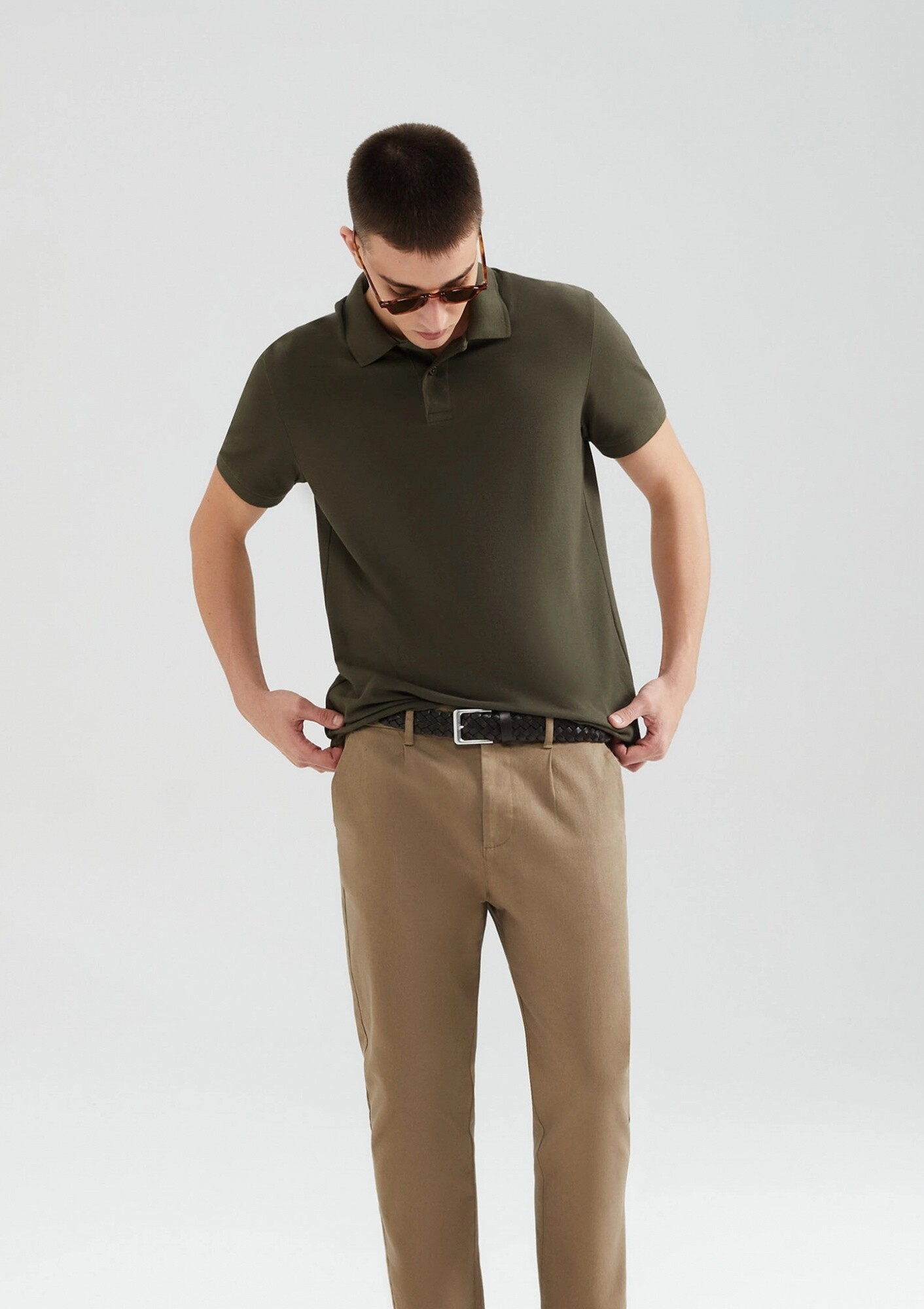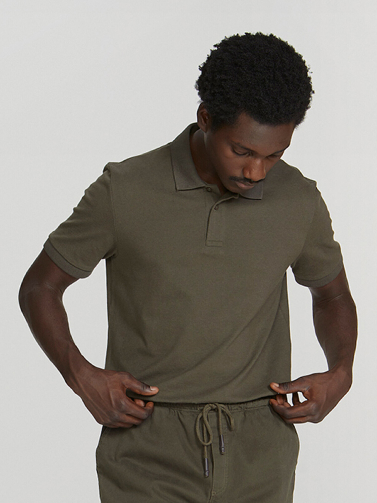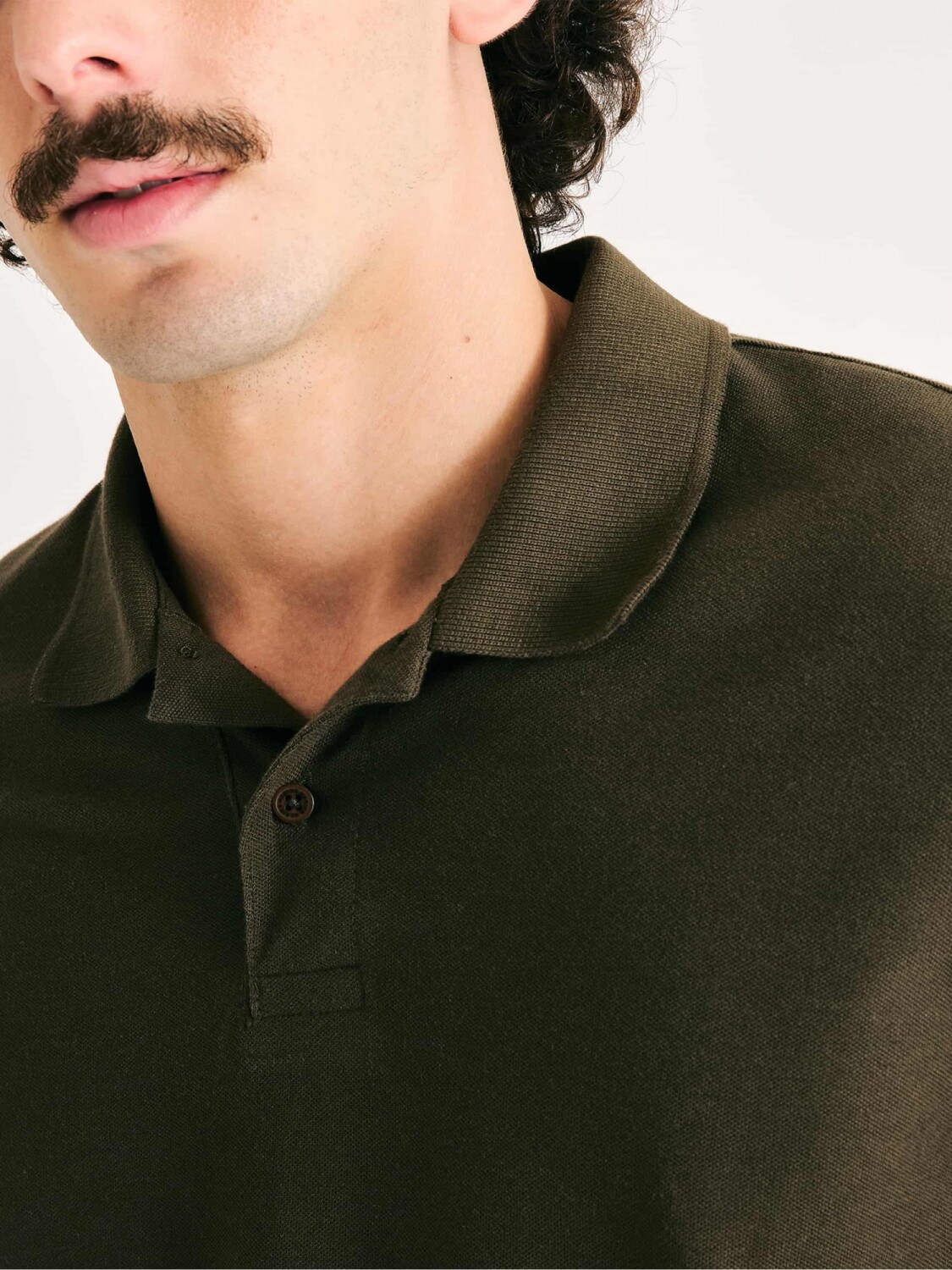 CAMISETA BÁSICA CON CUELLO - VERDE MUSGO