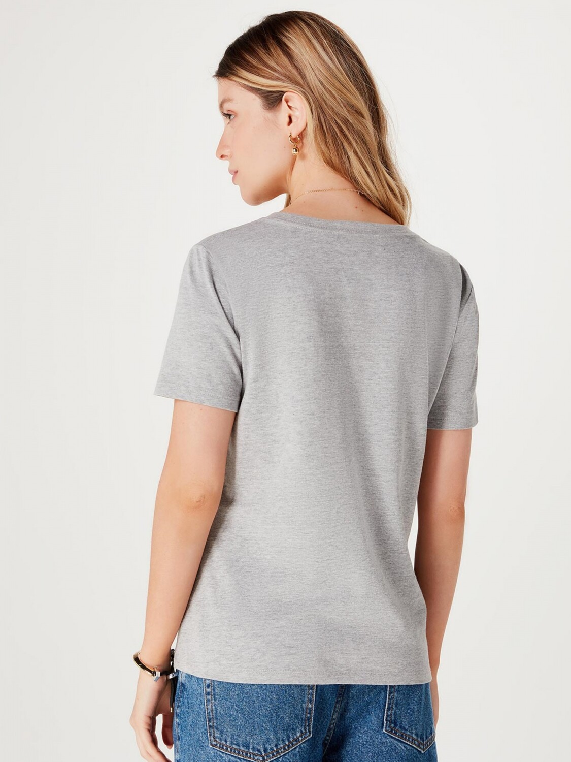 CAMISETA BÁSICA CUELLO EN V - GRIS
