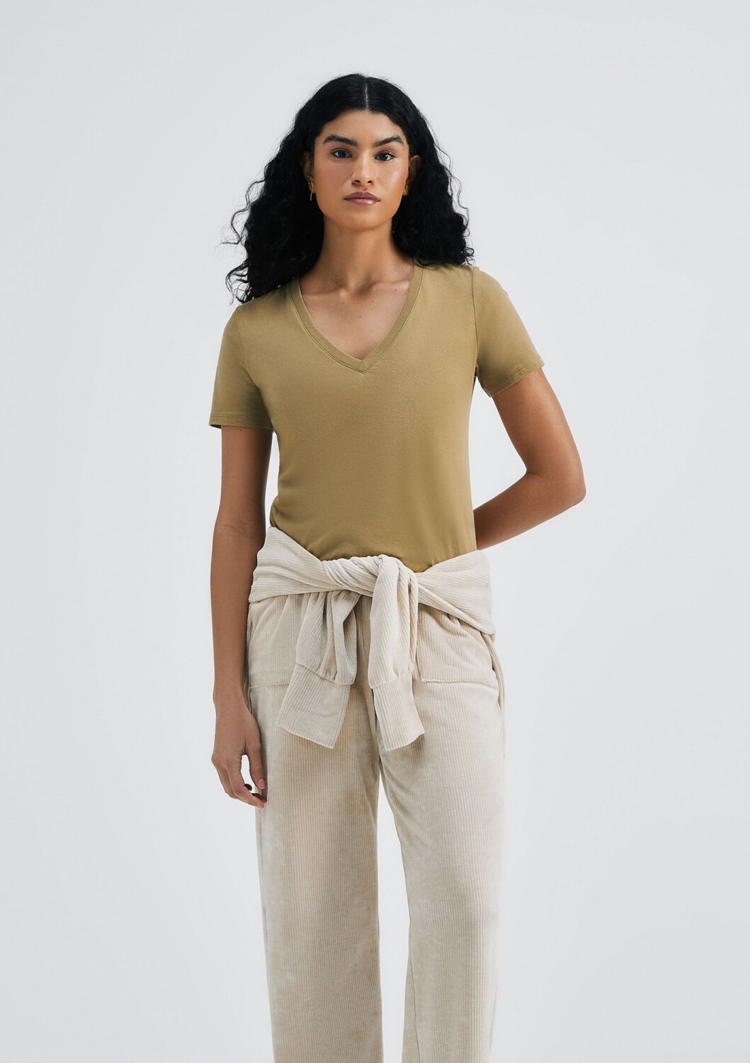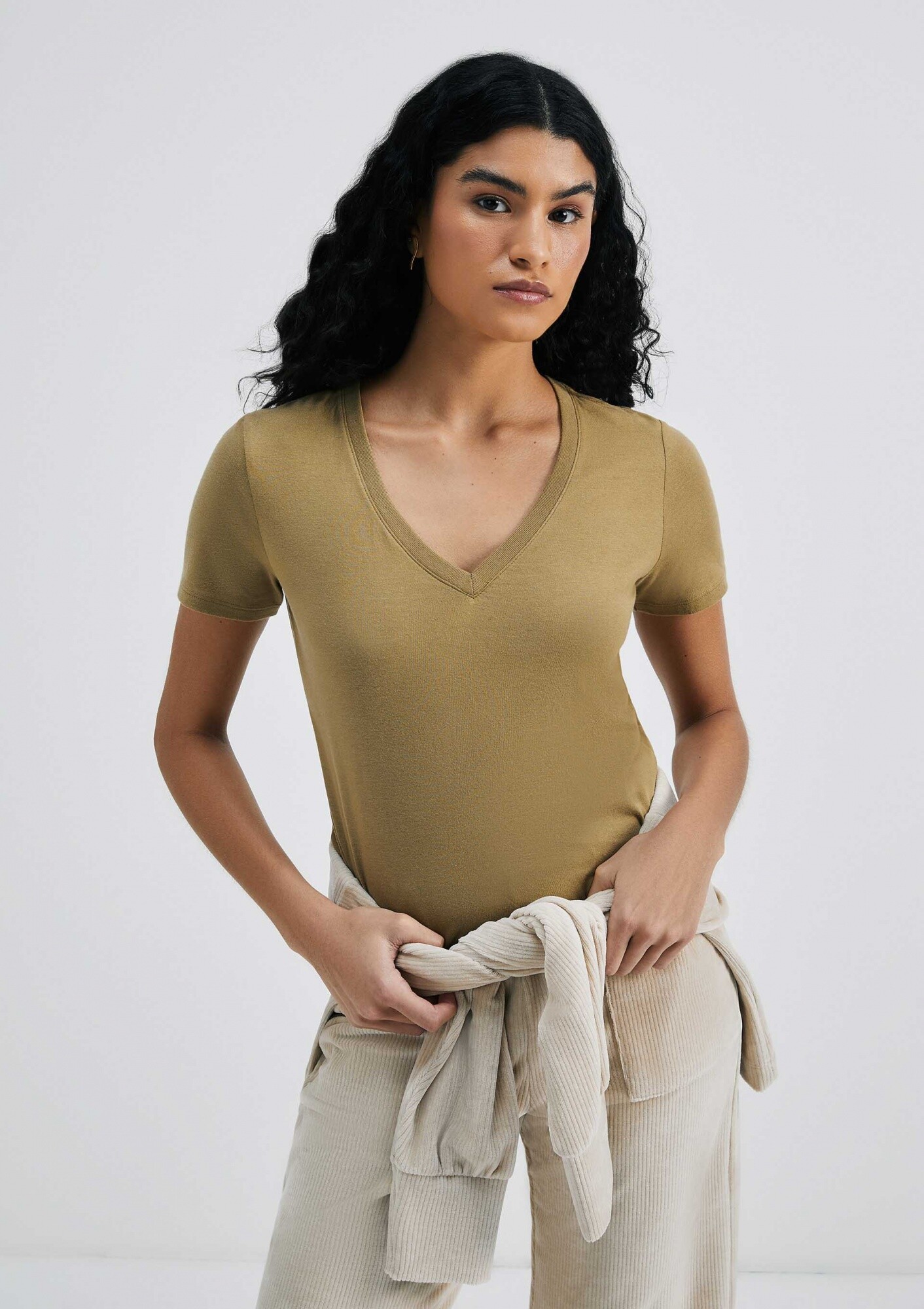 CAMISETA BÁSICA CUELLO EN V - VERDE