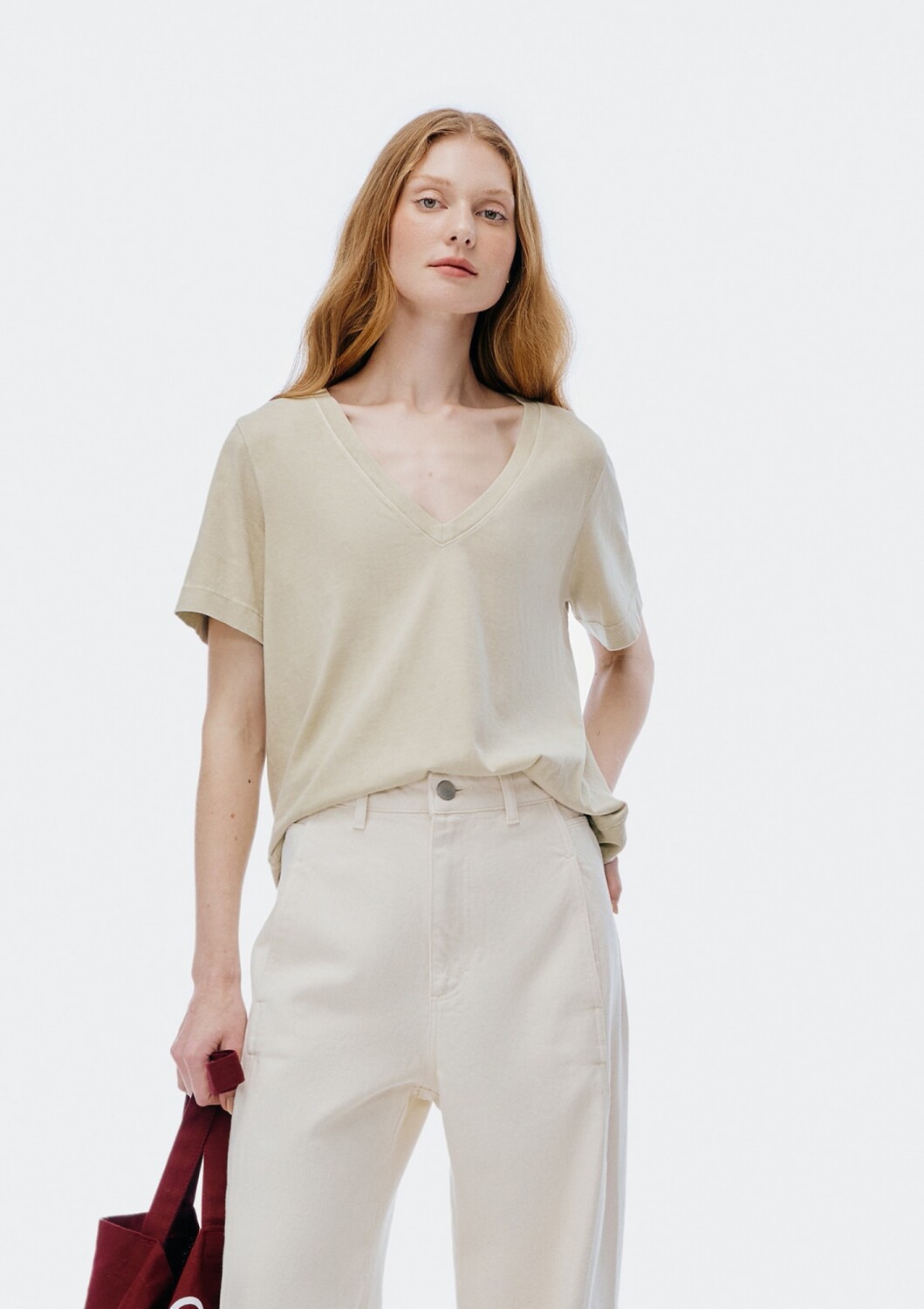 CAMISETA BÁSICA CUELLO EN V - VERDE