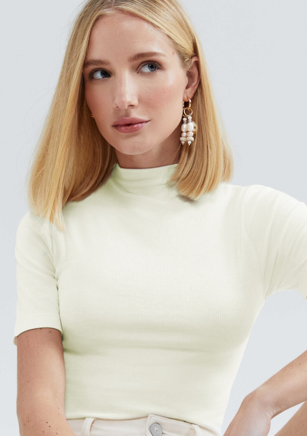 CAMISETA BÁSICA DE CUELLO ALTO - CREMA