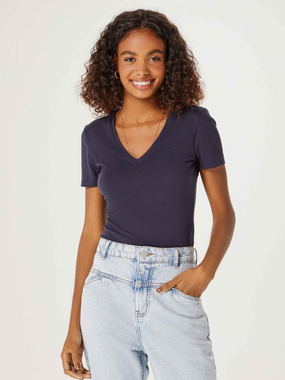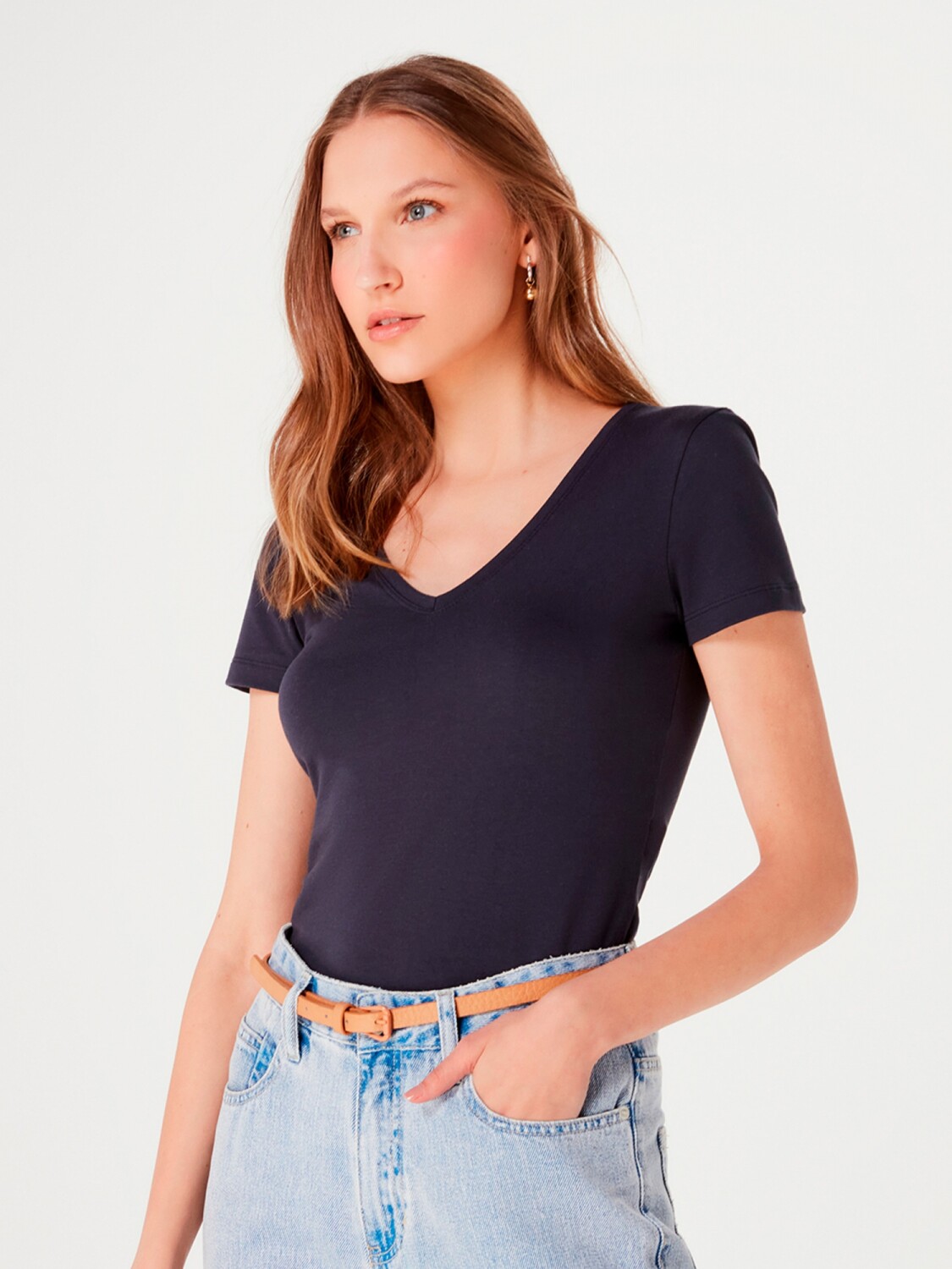 CAMISETA BÁSICA SLIM CUELLO EN V - AZUL OSCURO
