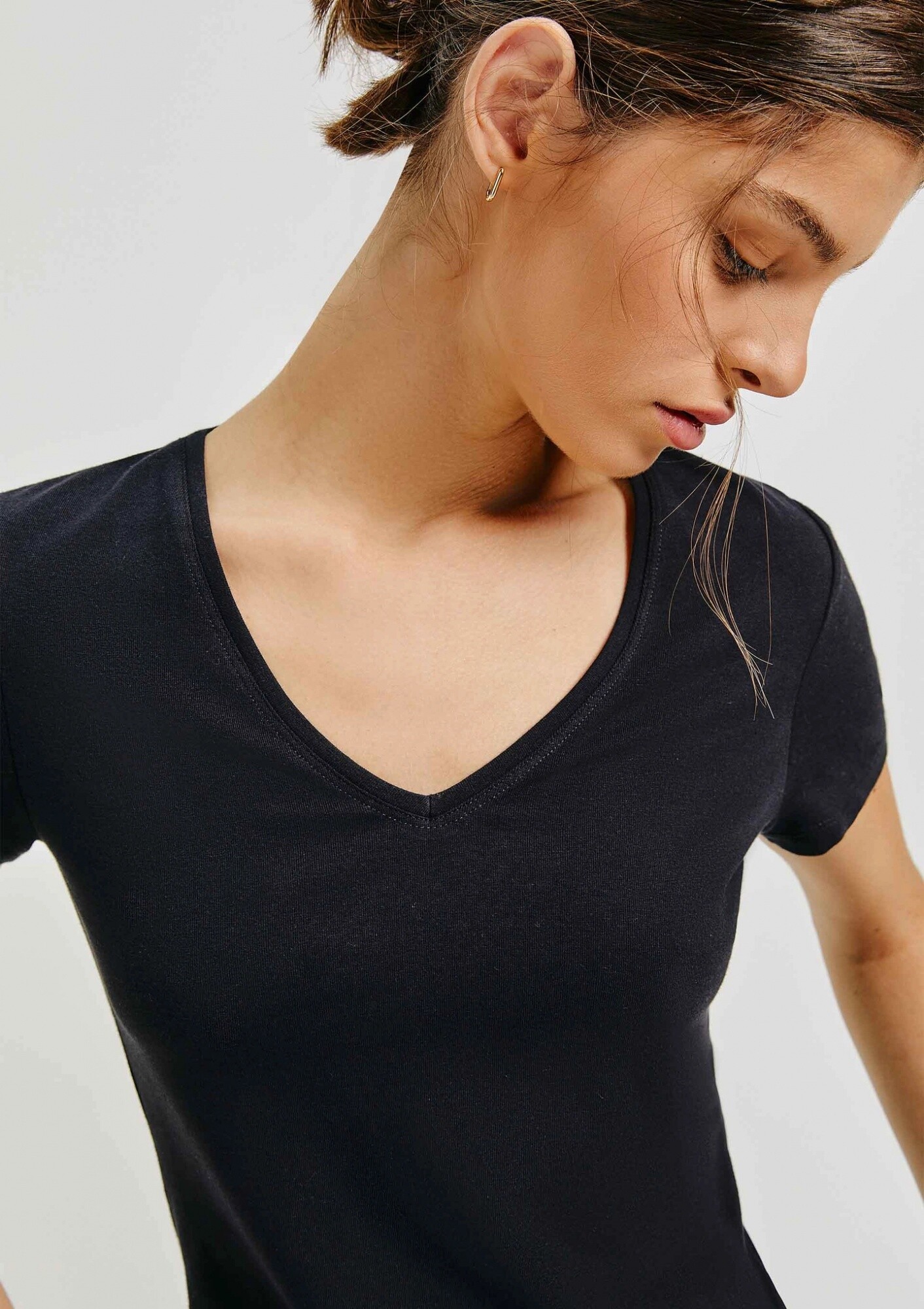 CAMISETA BÁSICA SLIM CUELLO EN V - NEGRO