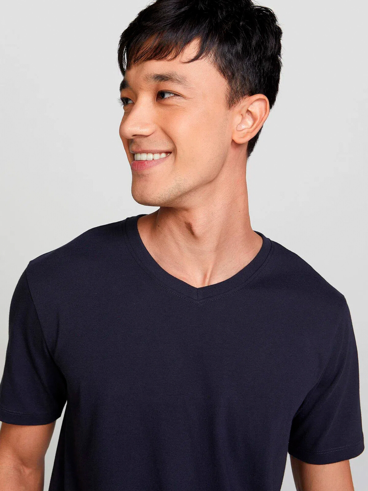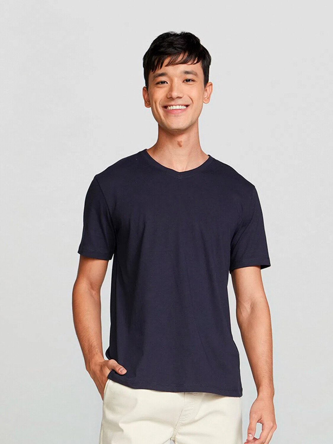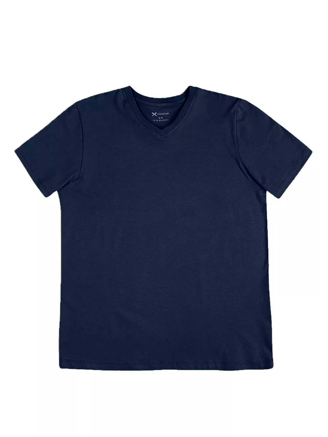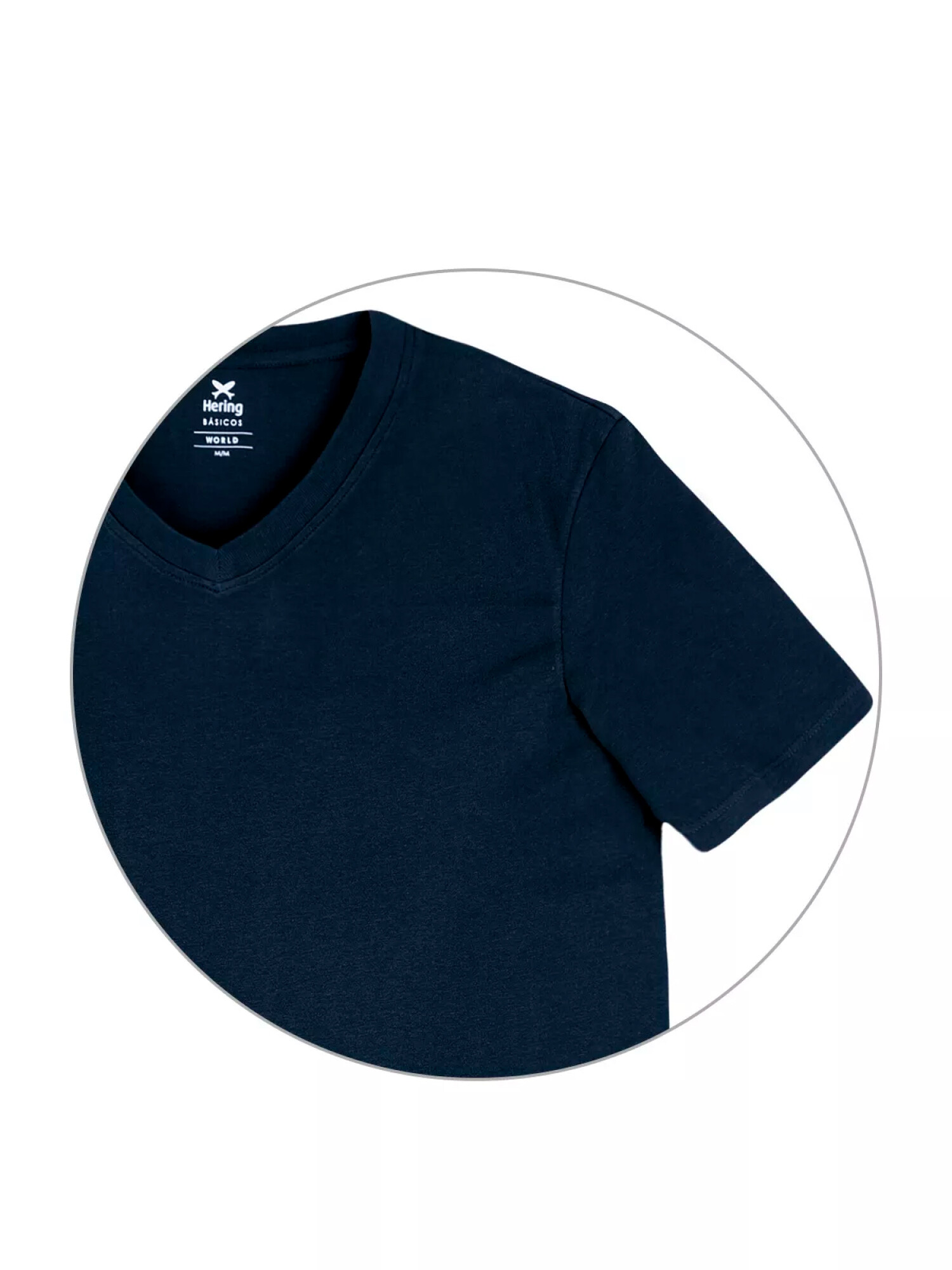 CAMISETA BÁSICA WORLD CUELLO EN V - AZUL OSCURO