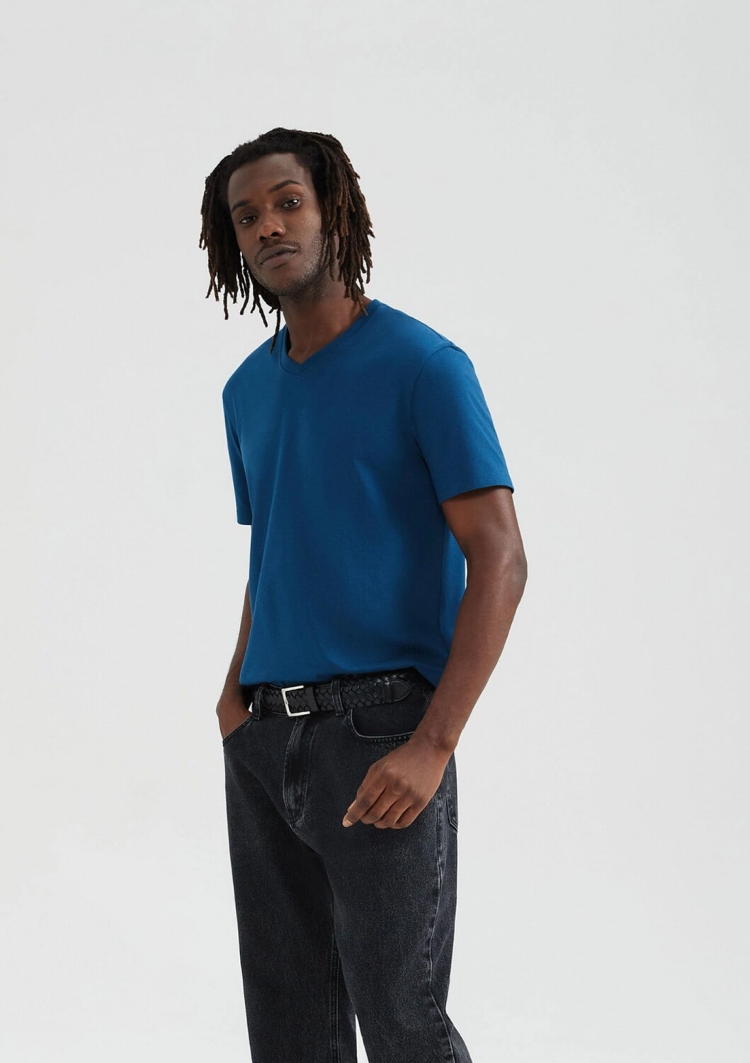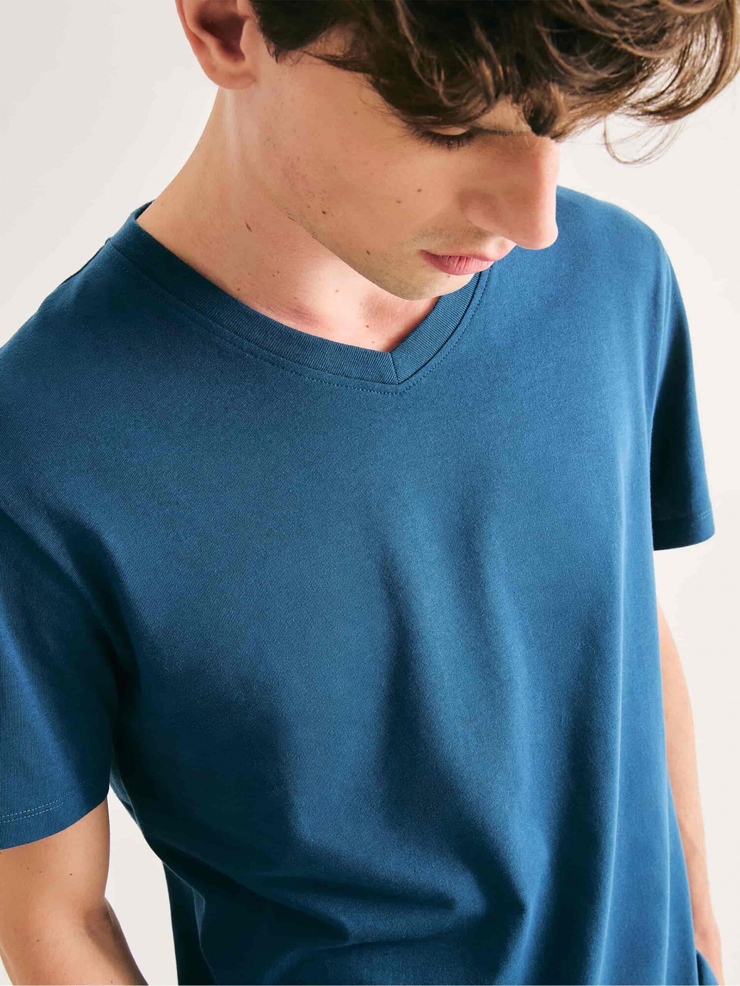 CAMISETA BÁSICA WORLD CUELLO EN V - AZUL