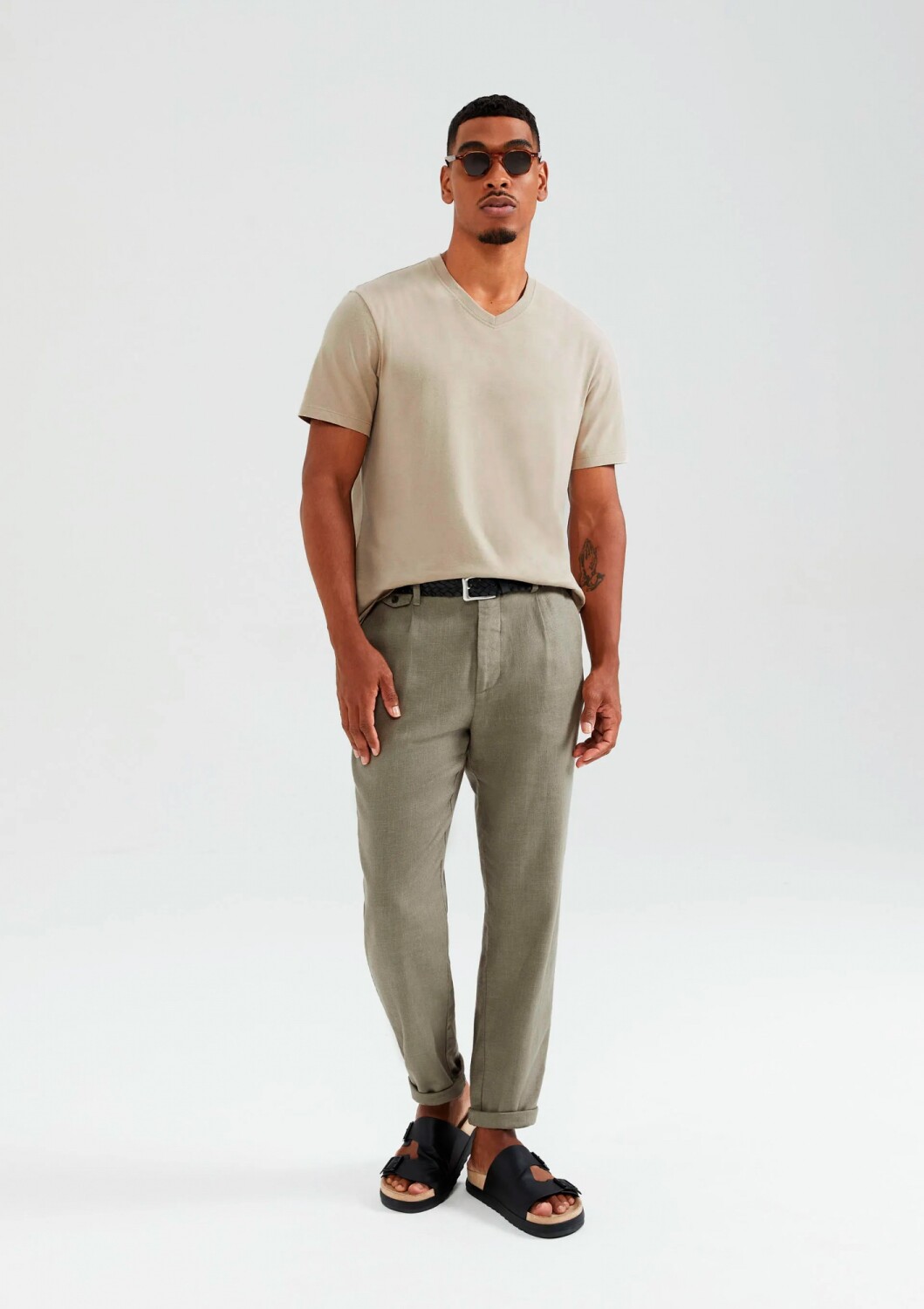 CAMISETA BÁSICA WORLD CUELLO EN V - BEIGE