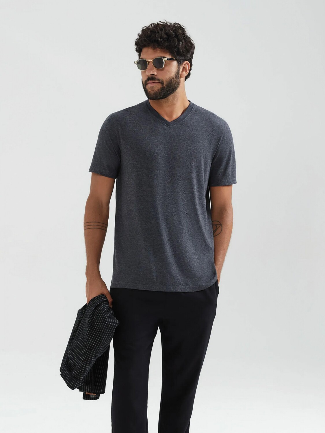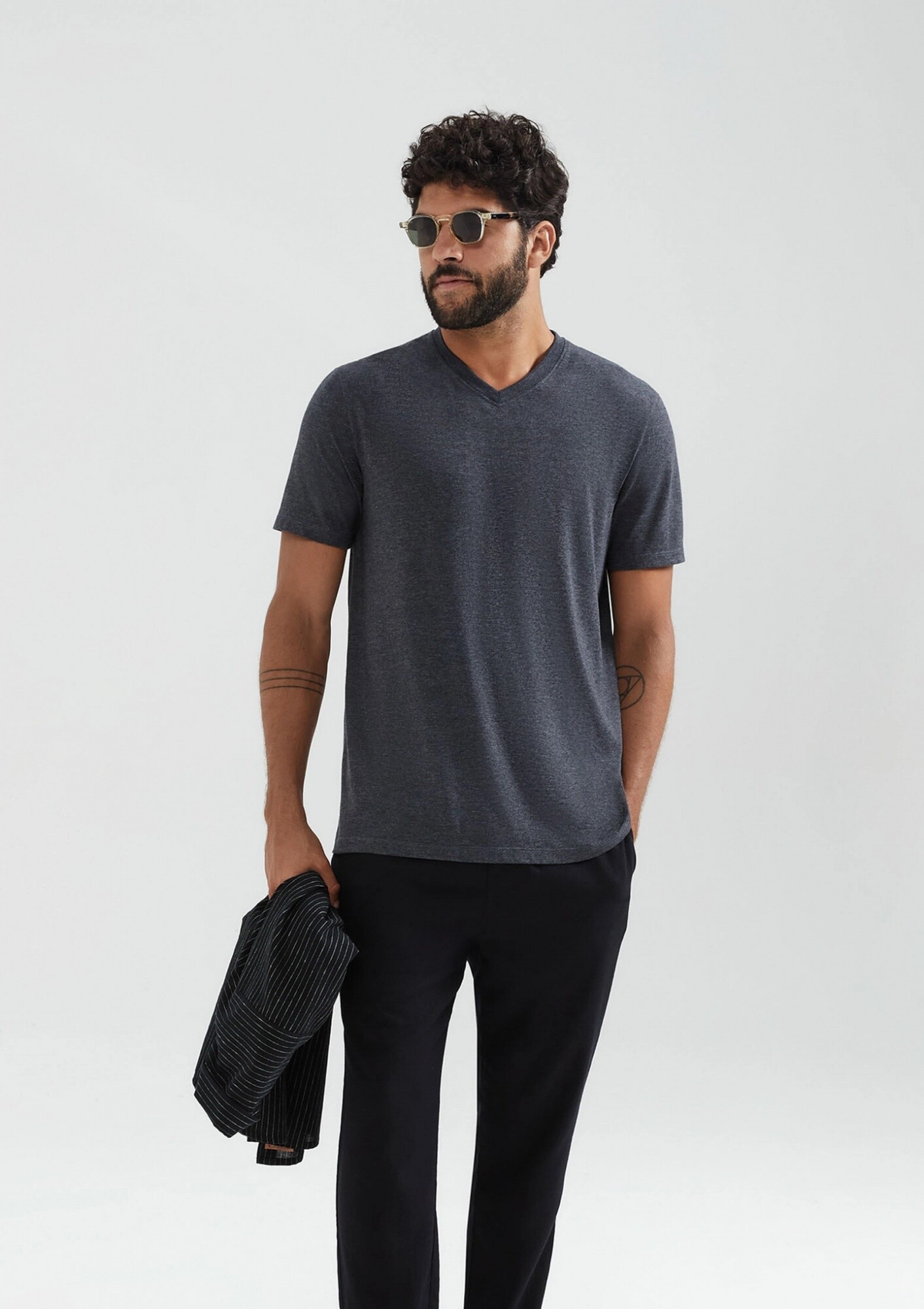 CAMISETA BÁSICA WORLD CUELLO EN V - GRIS OSCURO