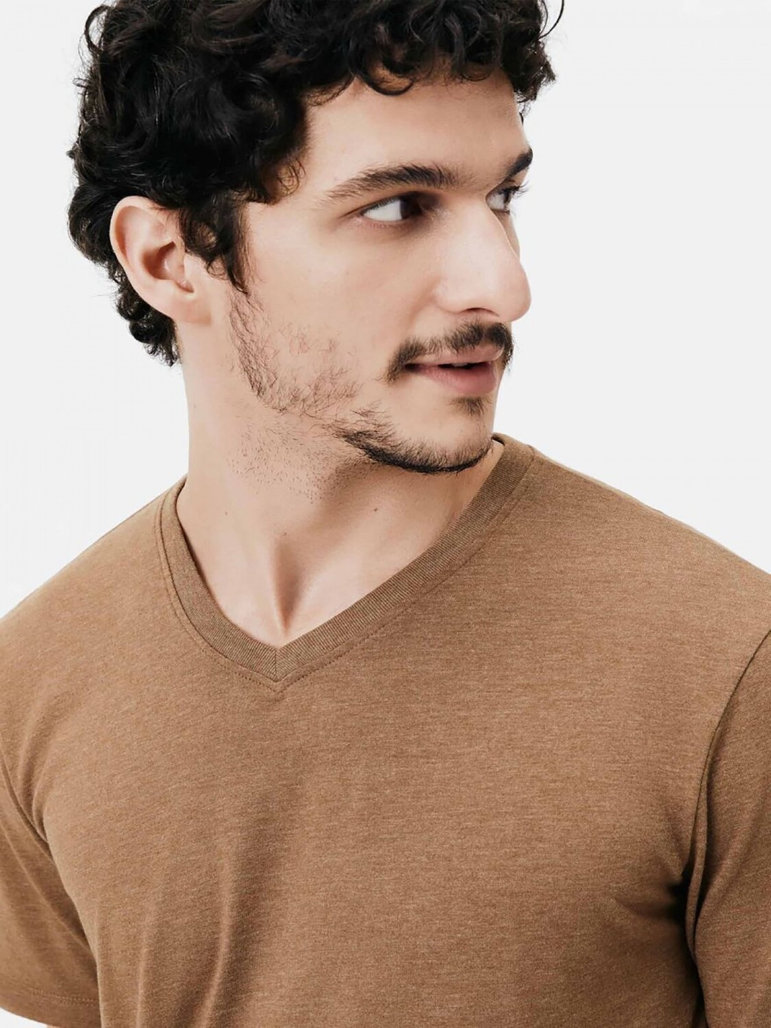 CAMISETA BÁSICA WORLD CUELLO EN V - MARRÓN