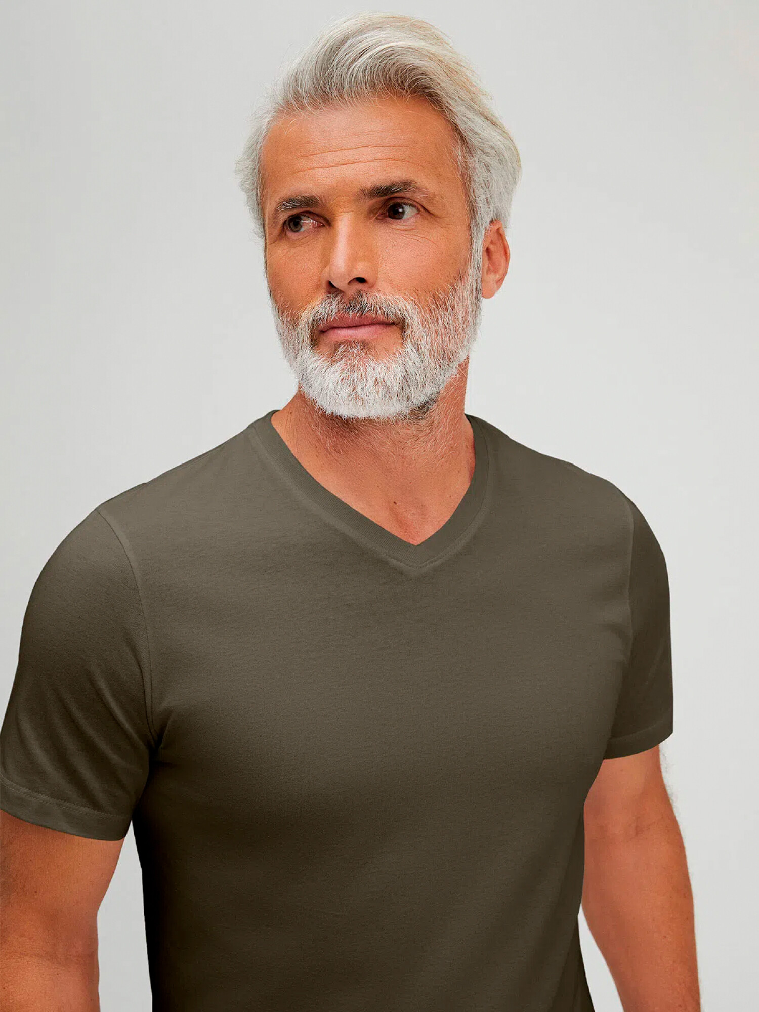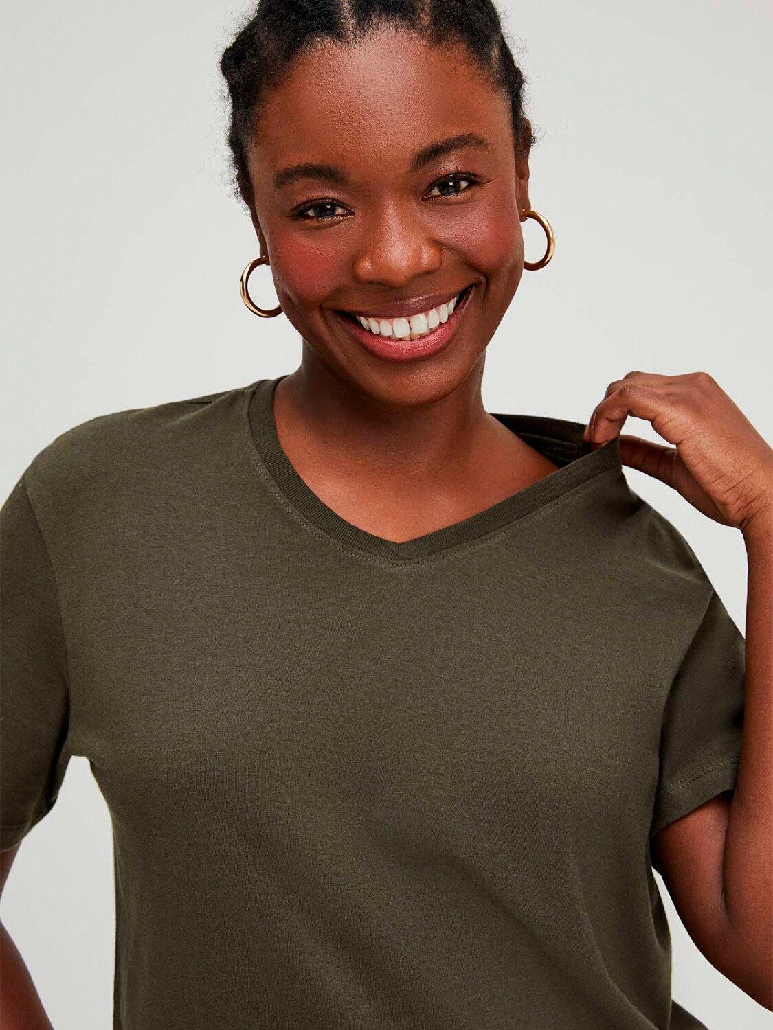 CAMISETA BÁSICA WORLD CUELLO EN V - VERDE MUSGO