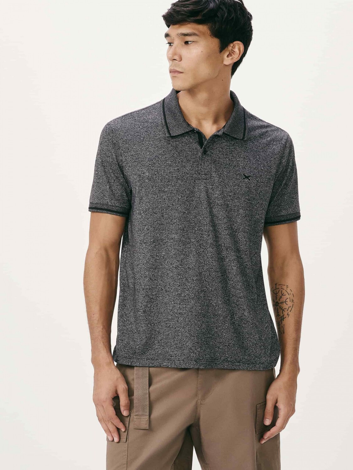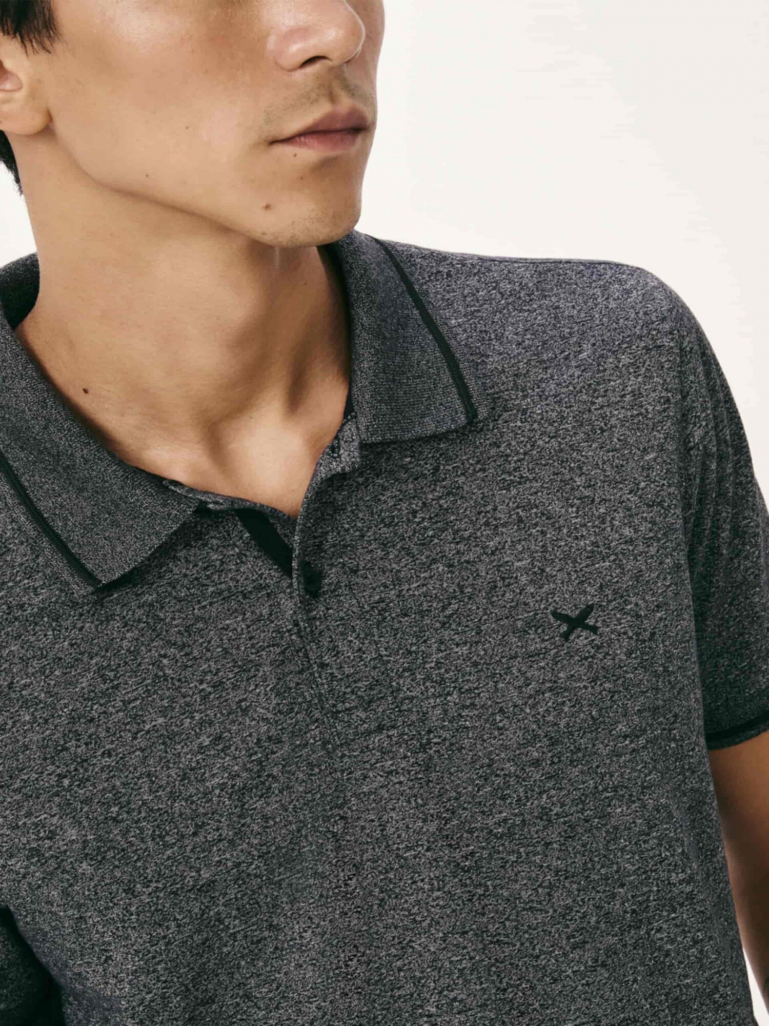 CAMISETA CON CUELLO TEXTURIZADA - GRIS
