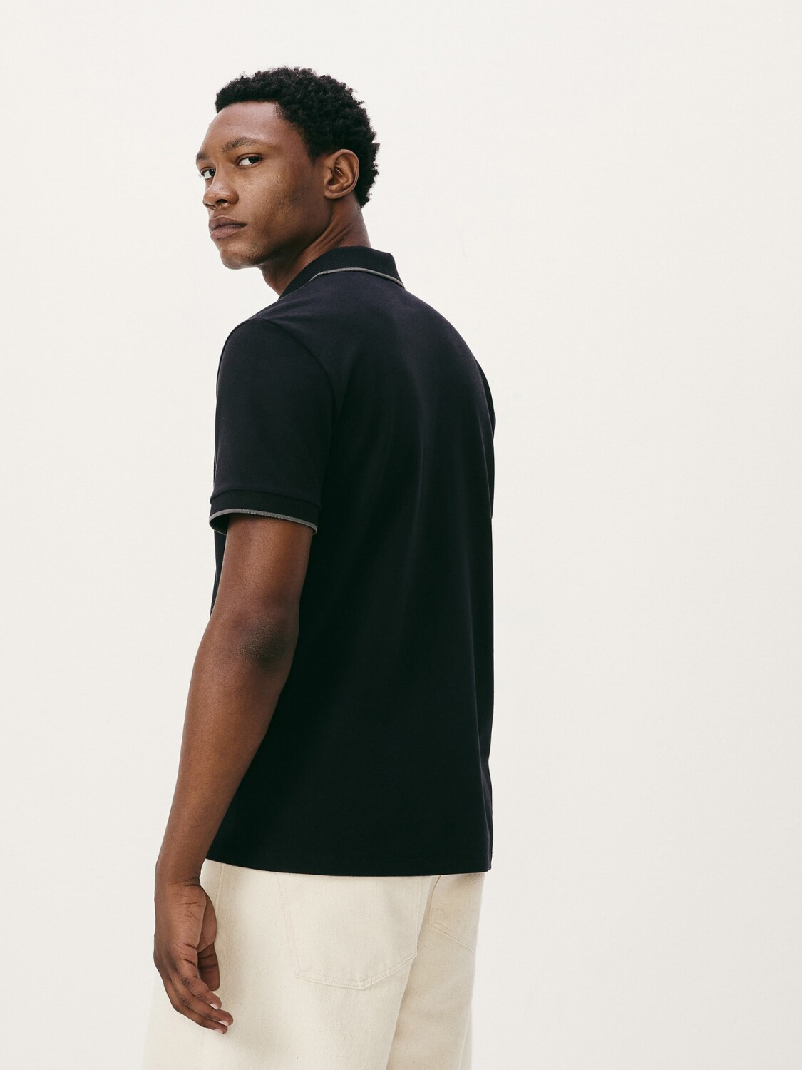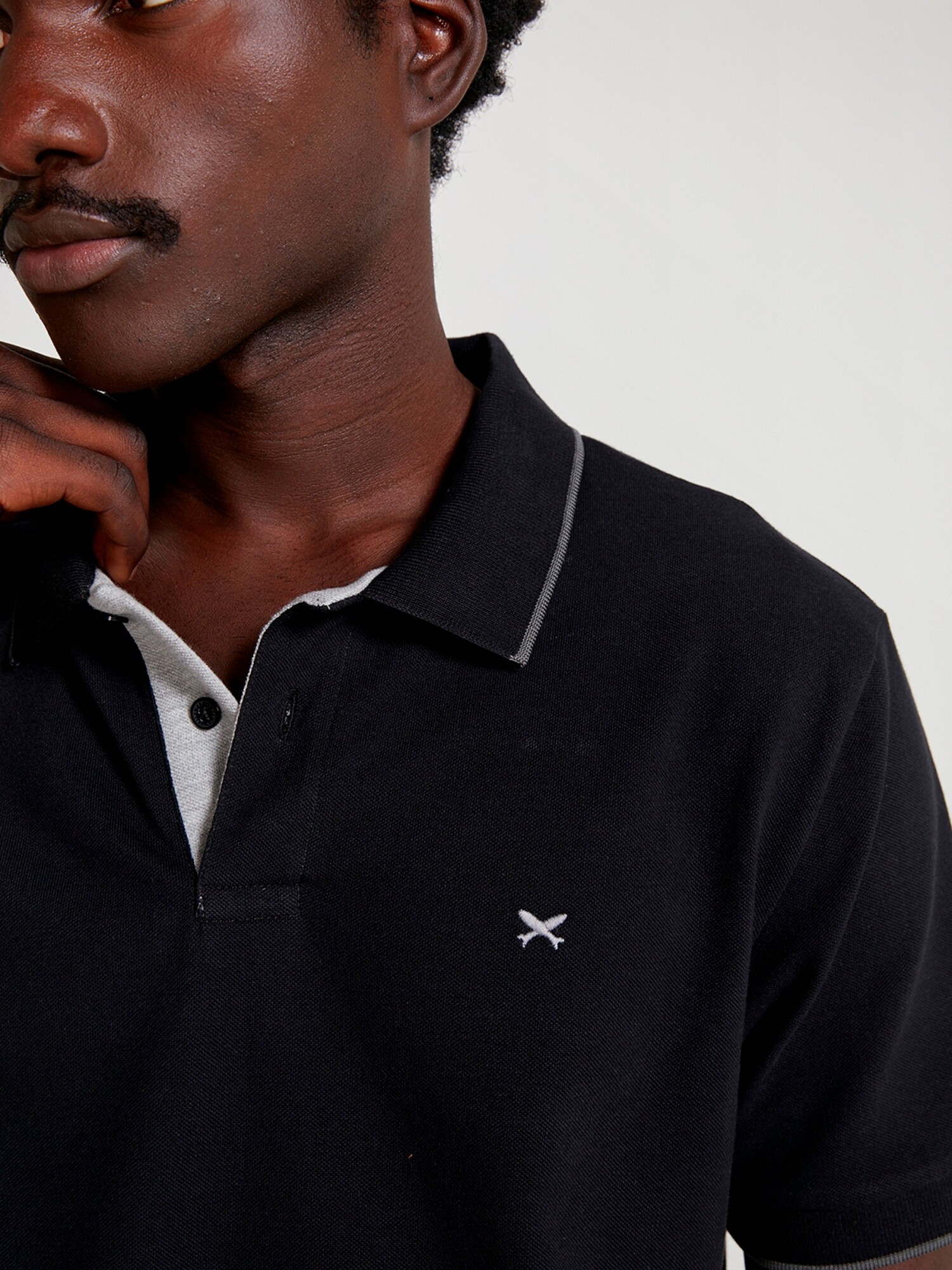 CAMISETA DE CUELLO CON BORDADO - NEGRO