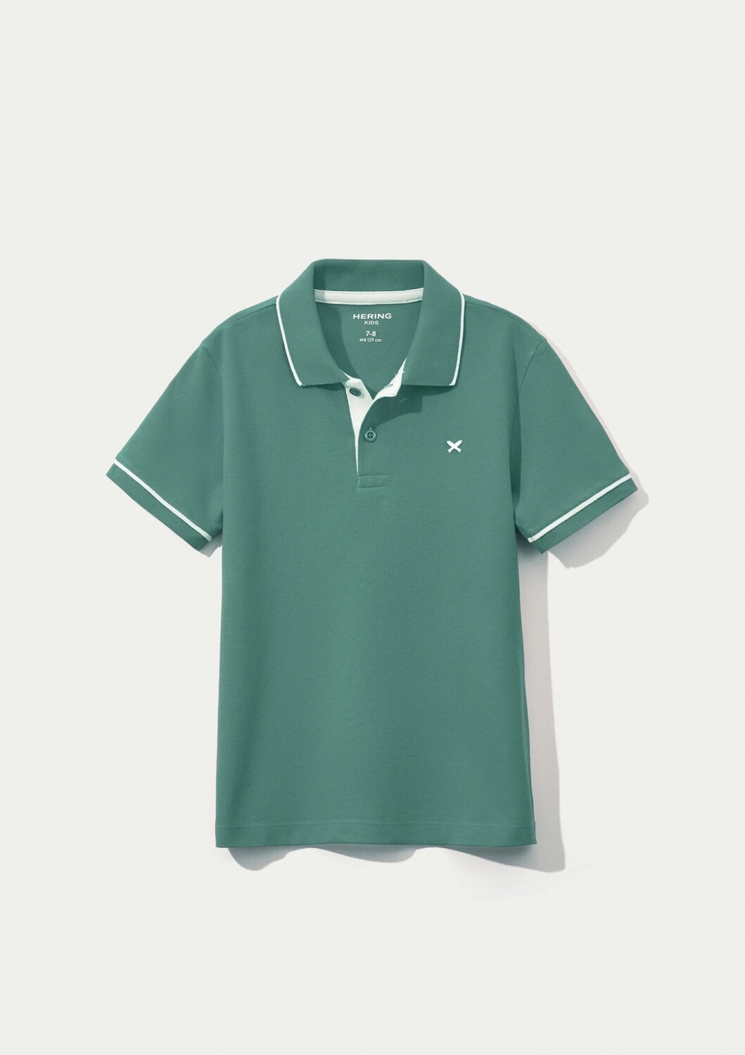 CAMISETA INFANTIL CON CUELLO Y BORDADO - VERDE