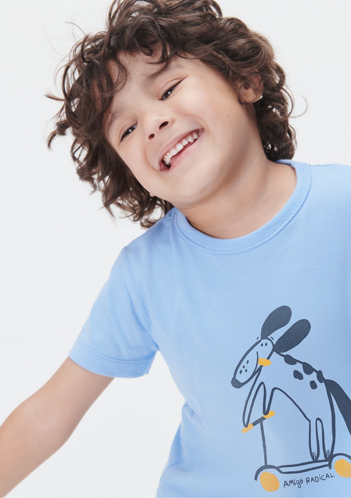 CAMISETA INFANTIL CON ESTAMPA - CELESTE