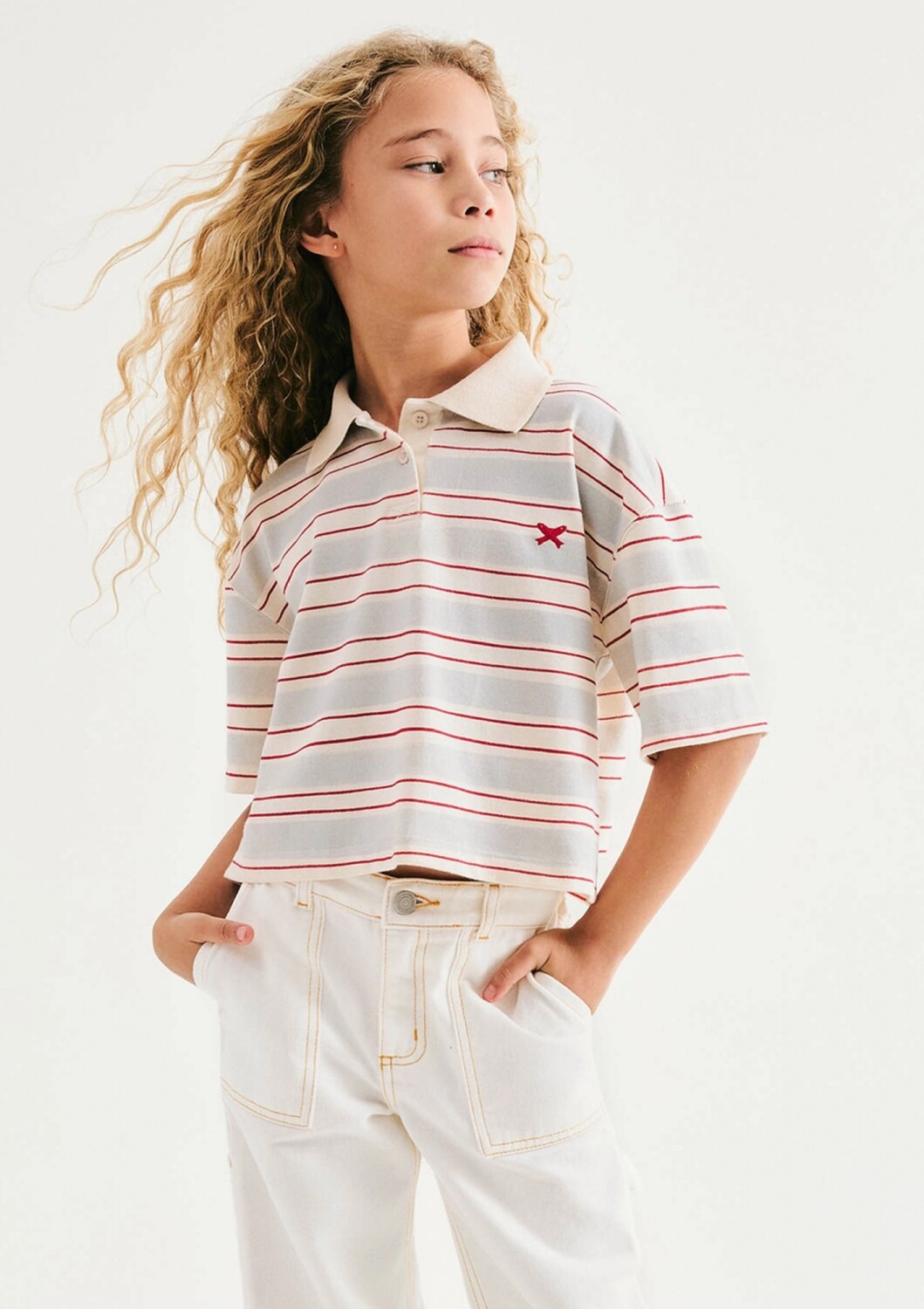 CAMISETA INFANTIL ESTAMPADO CON CUELLO - BEIGE