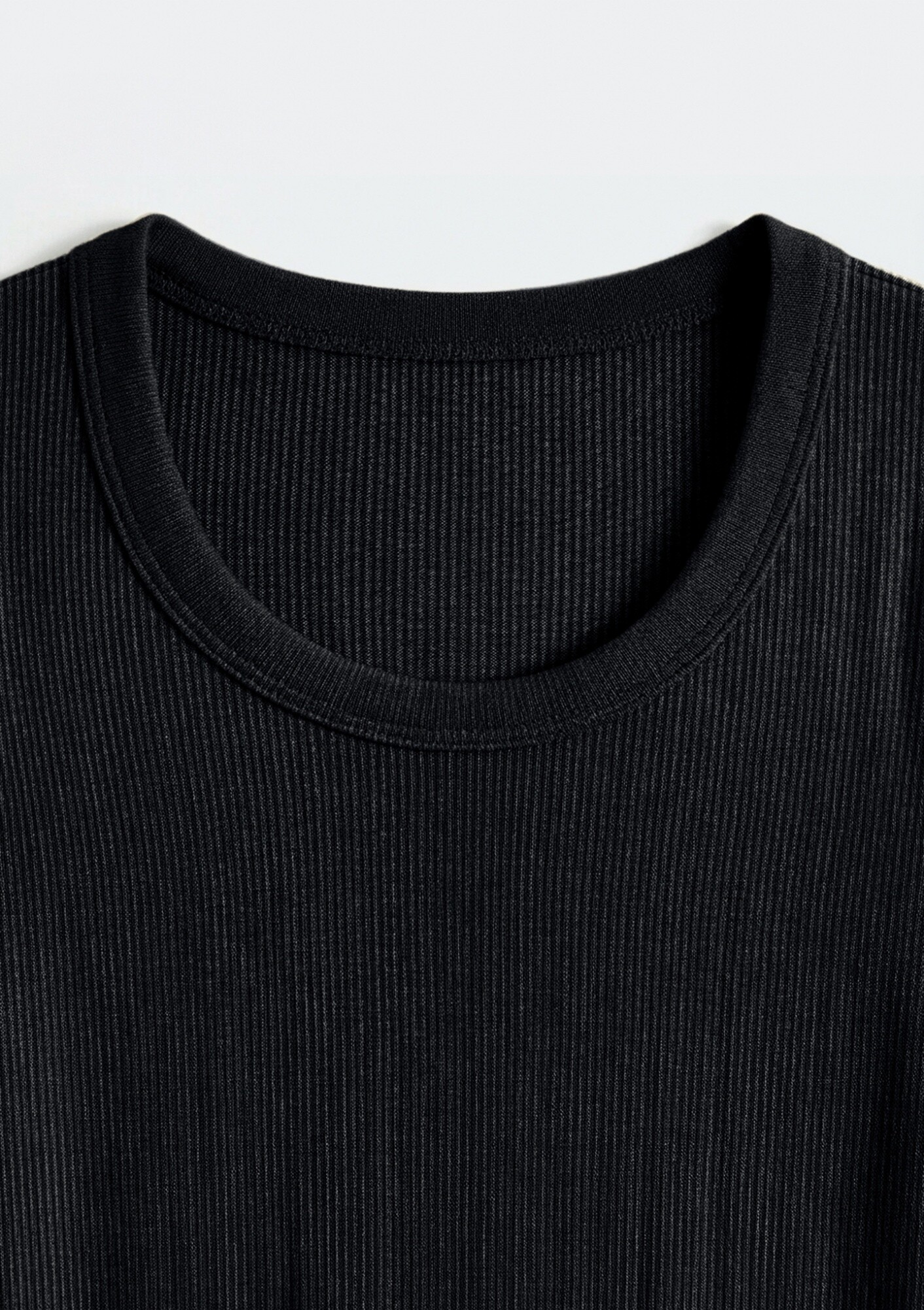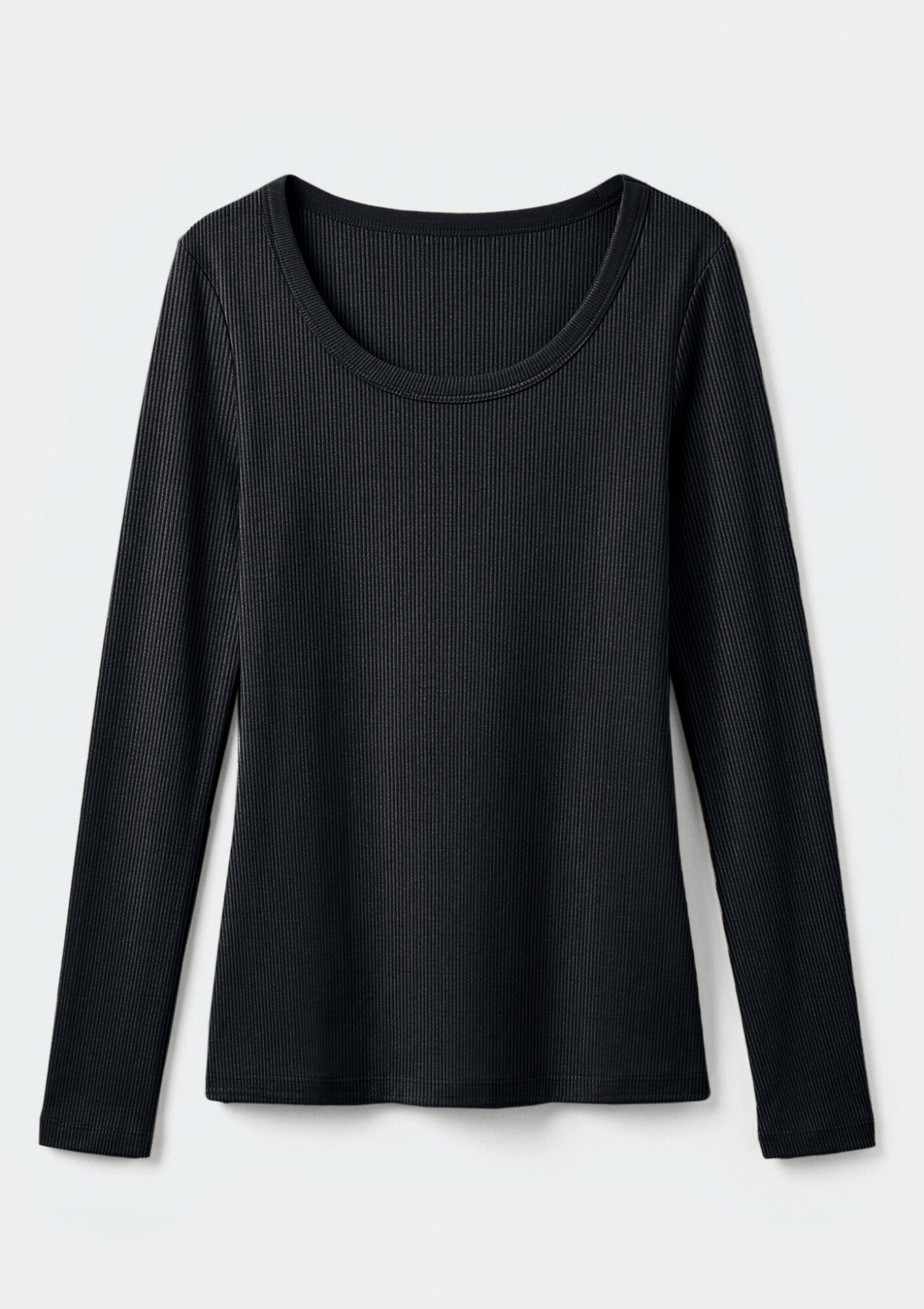 CAMISETA MANGA LARGA ACANALADA - NEGRO - NEGRO