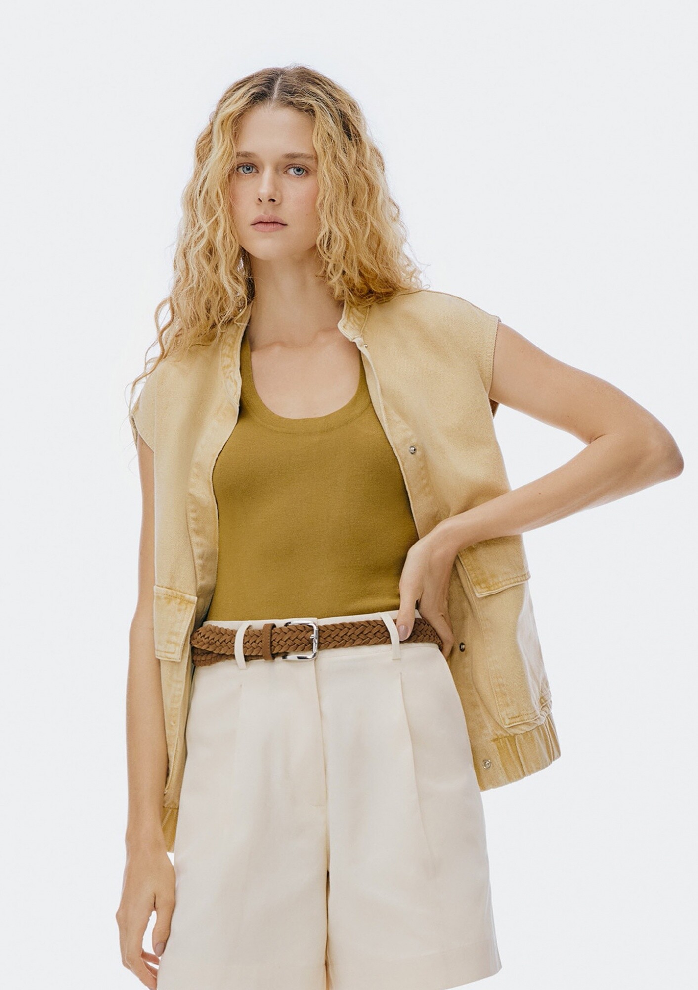 MUSCULOSA CUELLO EN U EN TELA ACANALADA - VERDE