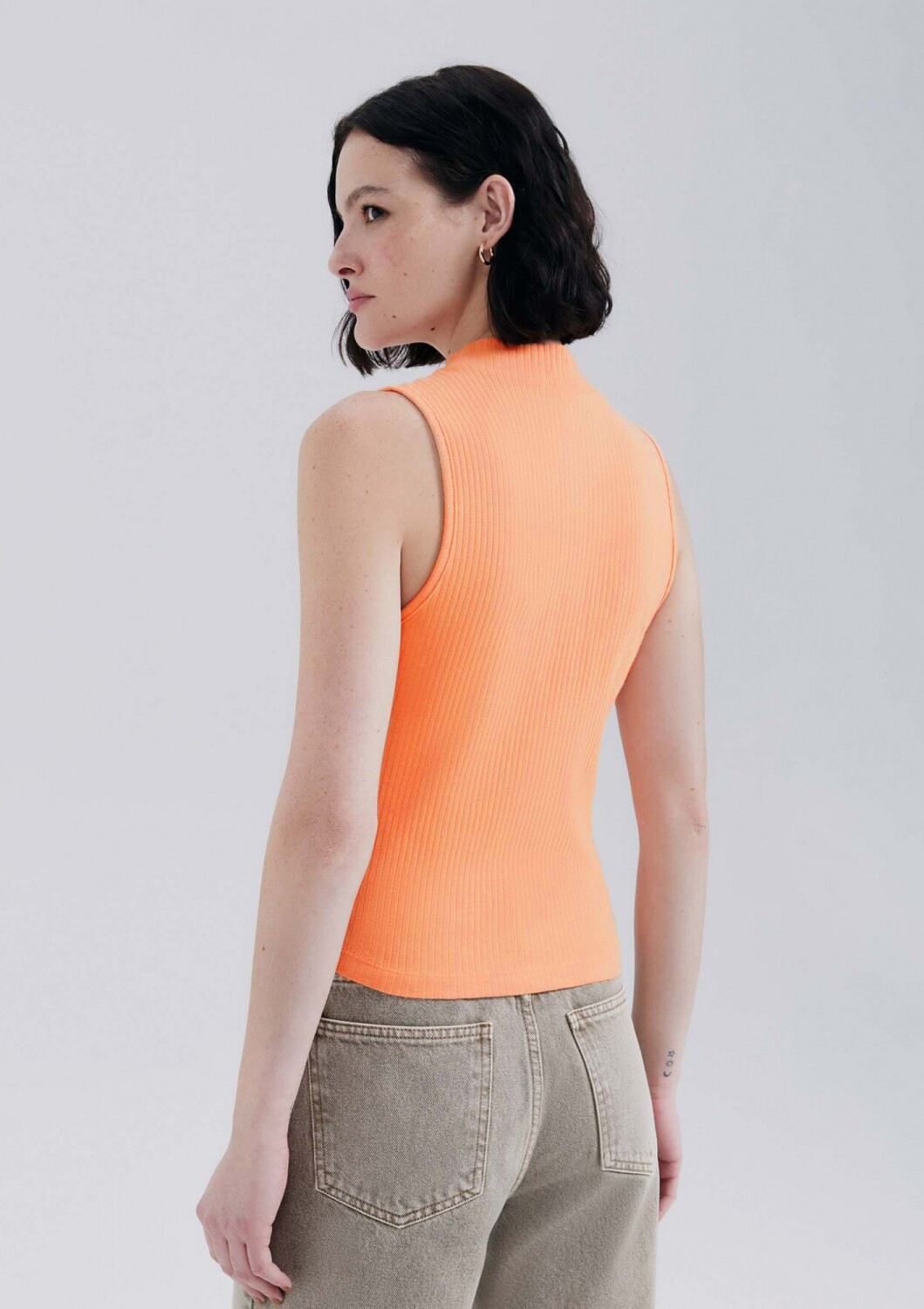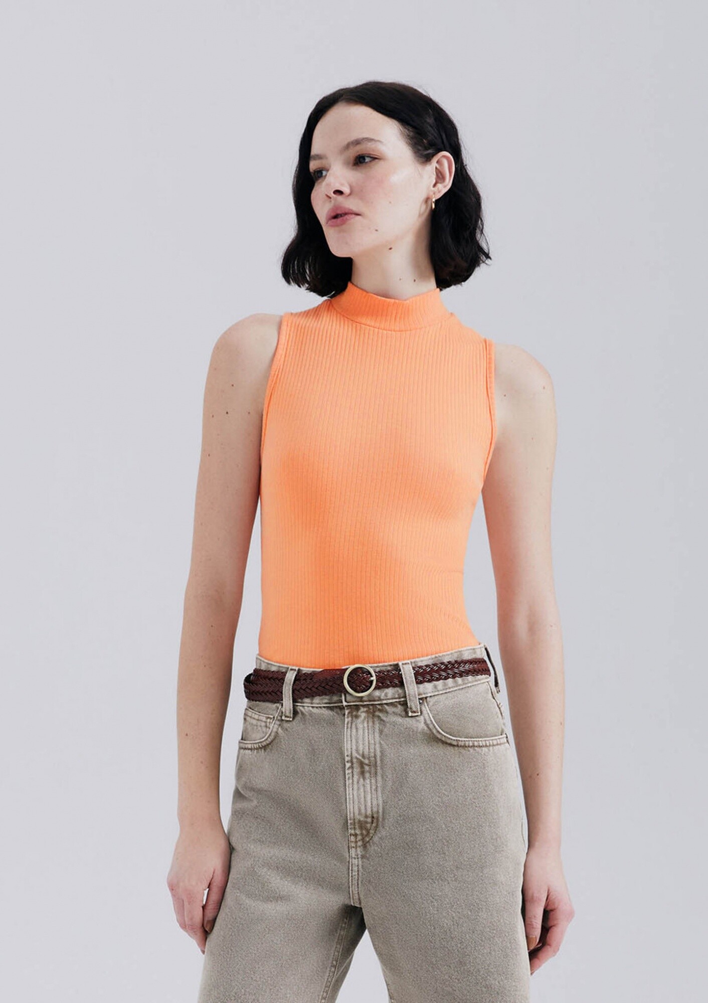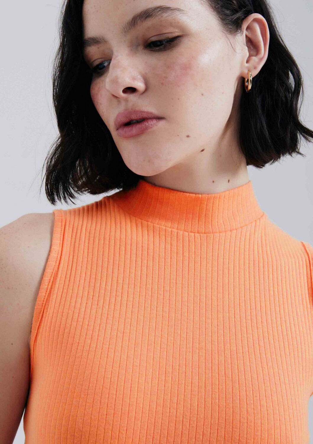 MUSCULOSA DE CUELLO ALTO EN TELA ACANALADA - NARANJA