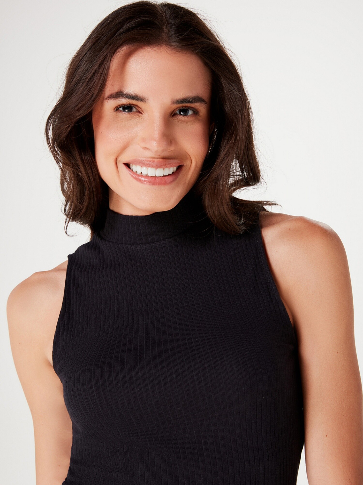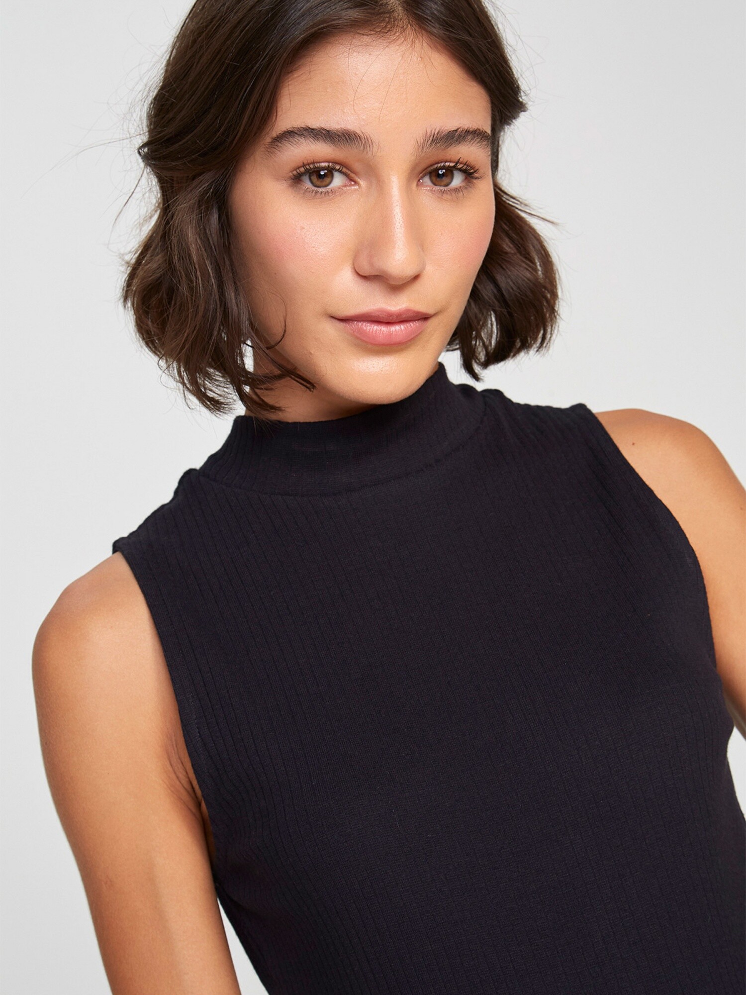 MUSCULOSA DE CUELLO ALTO EN TELA ACANALADA - NEGRO