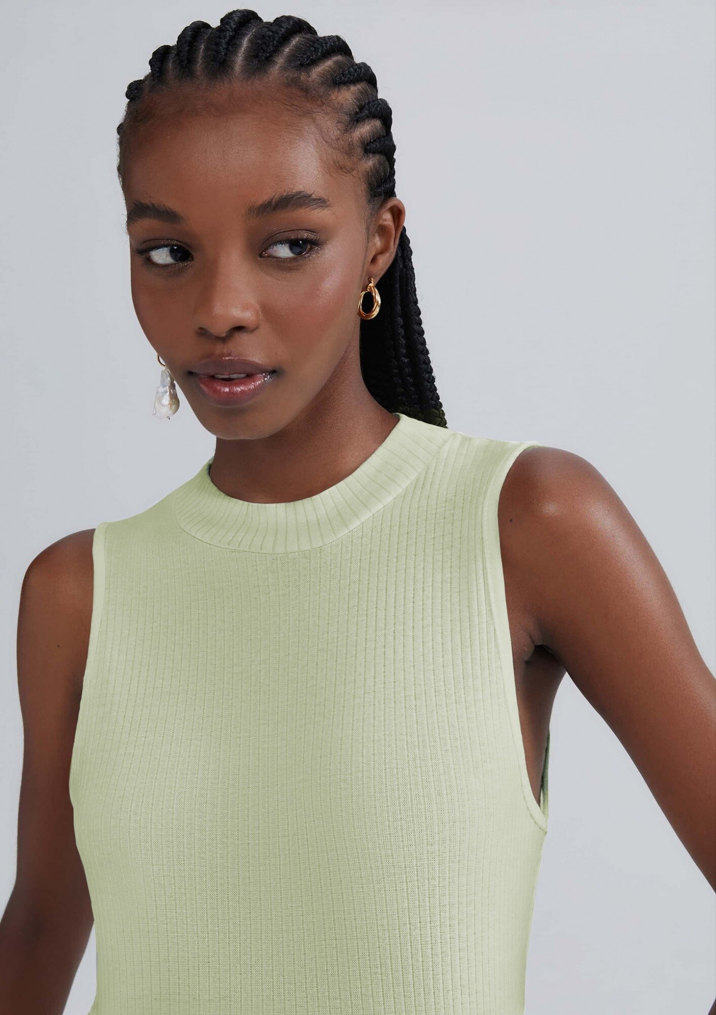MUSCULOSA DE CUELLO ALTO EN TELA ACANALADA - VERDE