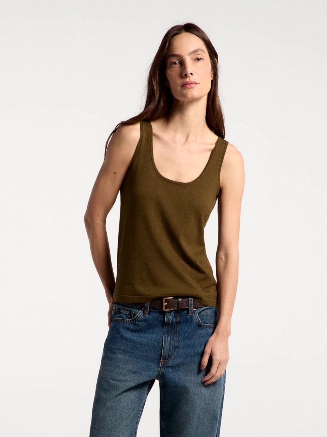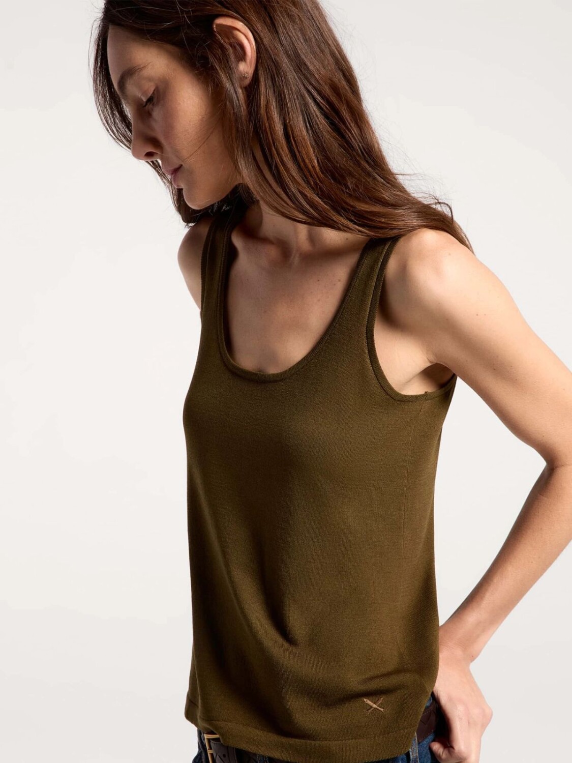 MUSCULOSA DE PUNTO CON BRETEL ANCHO - MARRÓN