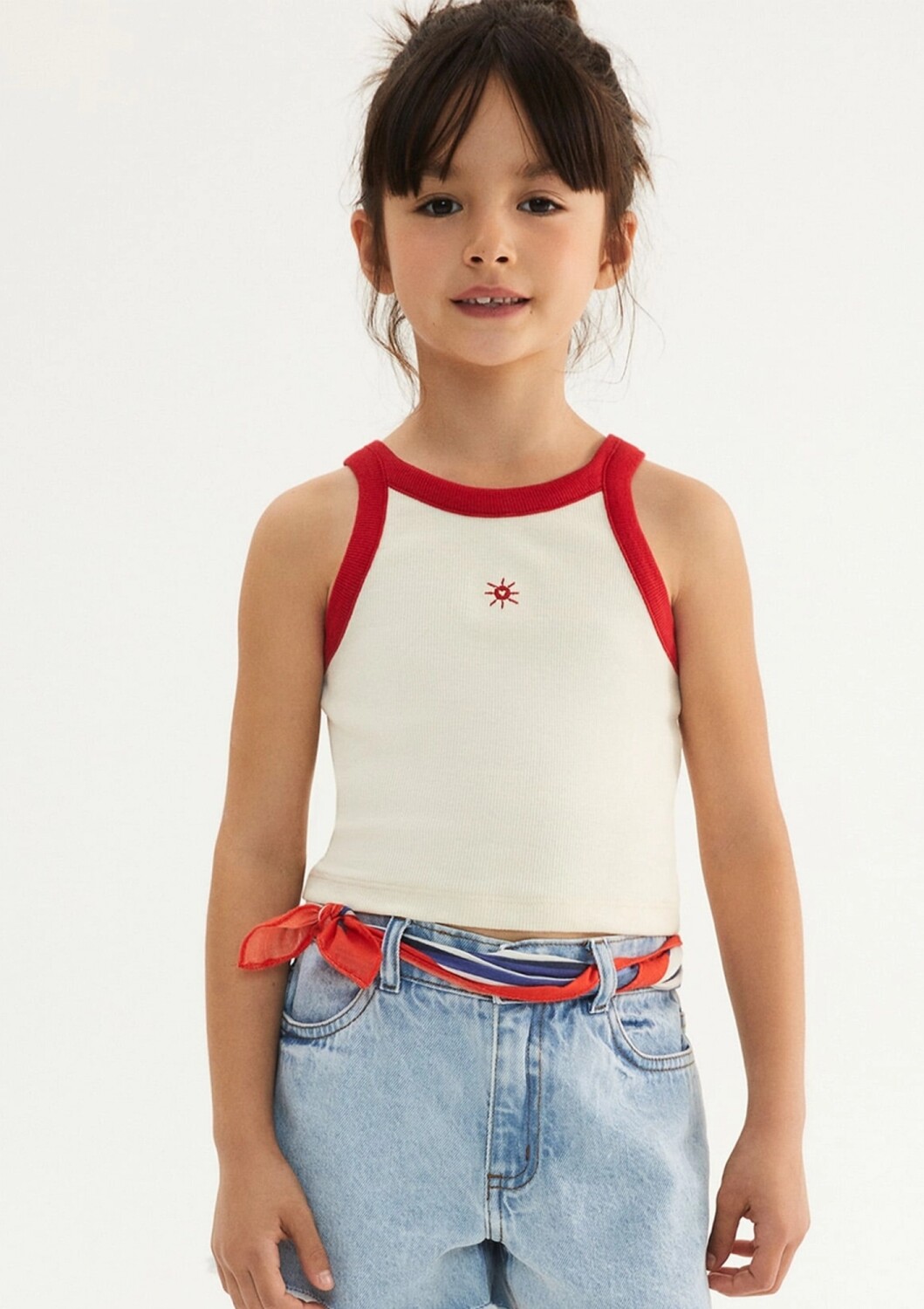 MUSCULOSA INFANTIL CON BORDADO - BEIGE