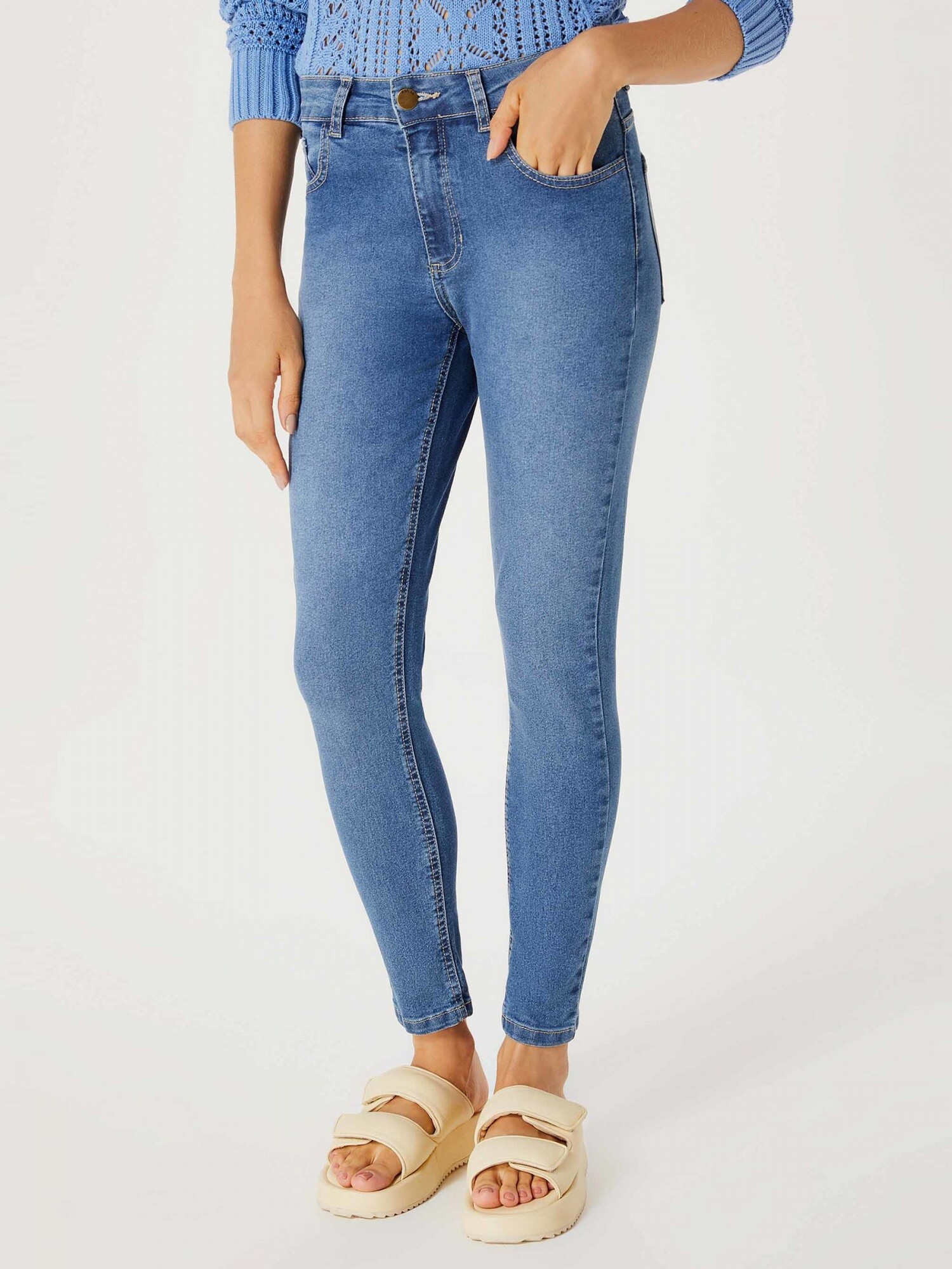 PANTALÓN DE JEAN CINTURA MEDIA SKINNY - AZUL