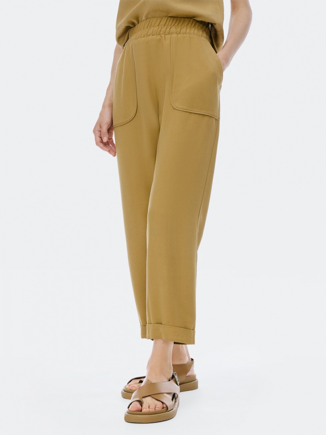 PANTALÓN DE TIRO ALTO CON BOLSILLOS - MARRÓN