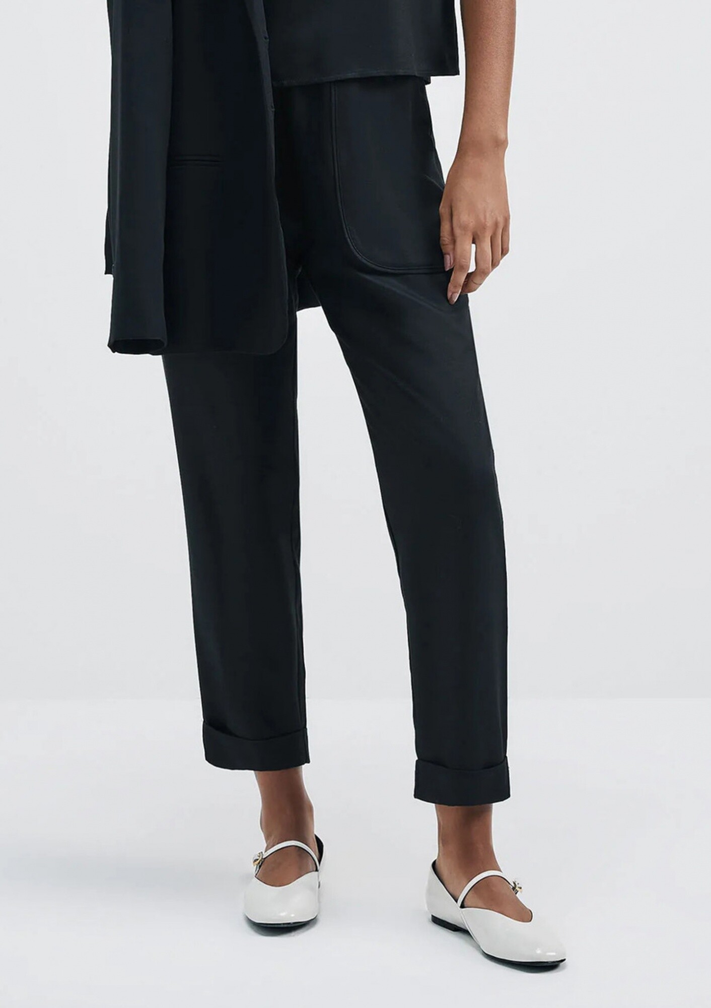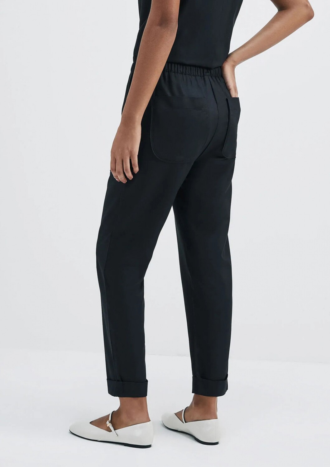 PANTALÓN DE TIRO ALTO CON BOLSILLOS - NEGRO