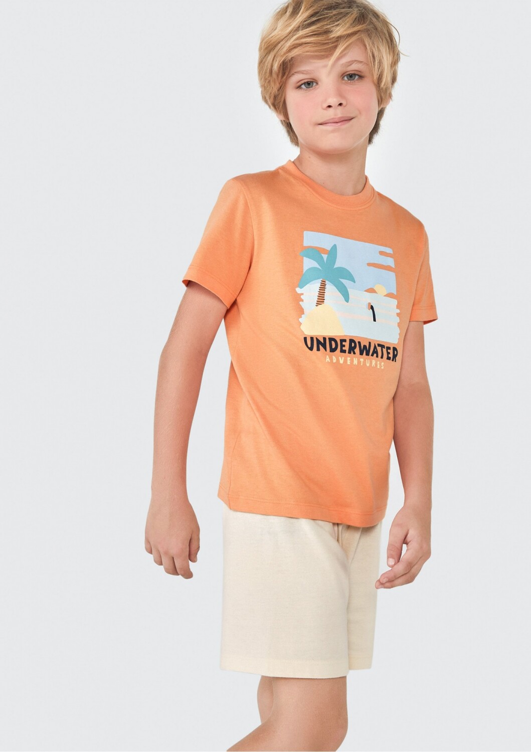 PIJAMA DE NIÑO CON ESTAMPA Y BERMUDA - NARANJA