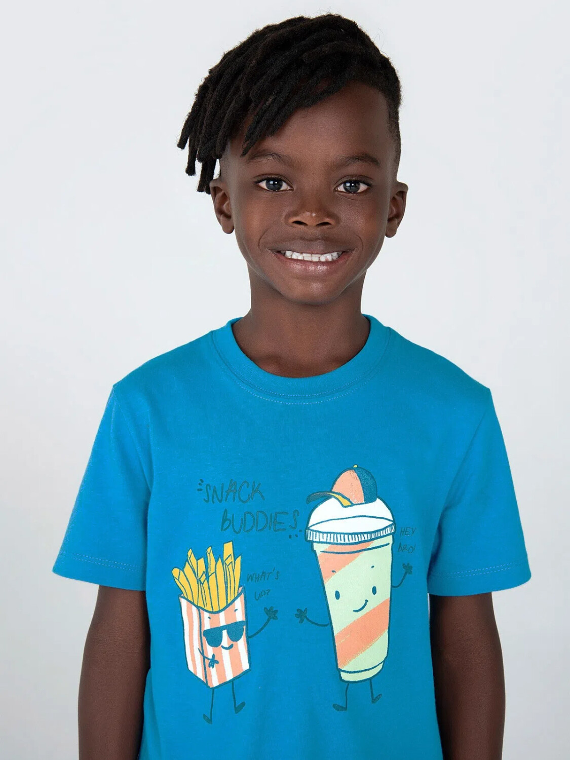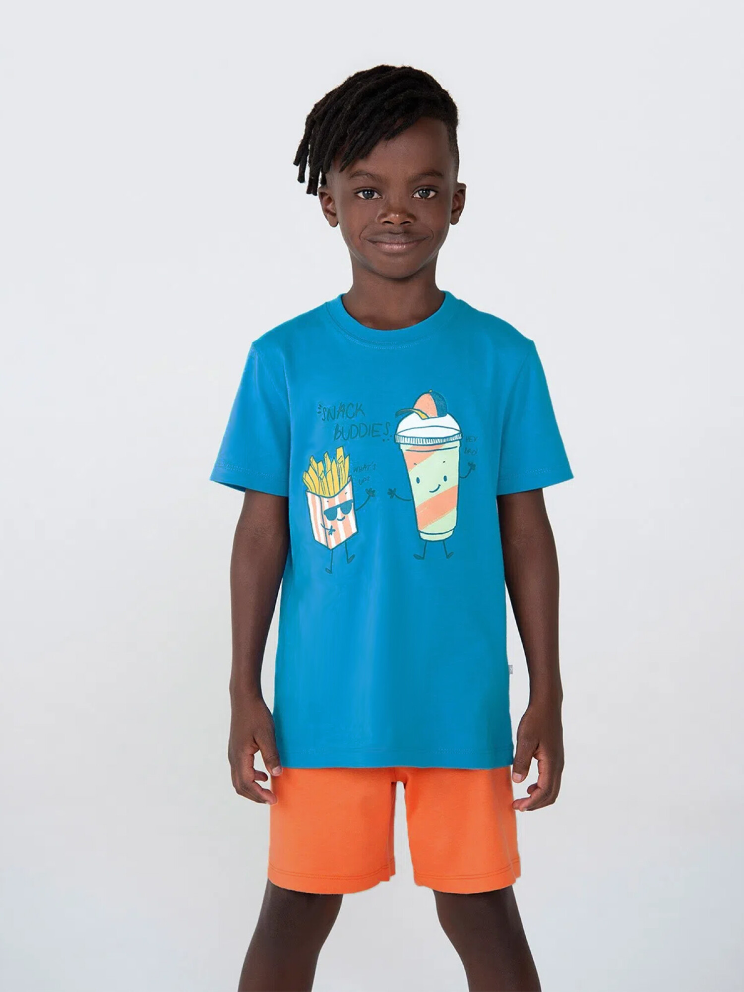 PIJAMA INFANTIL CON ESTAMPA Y BERMUDA - CELESTE