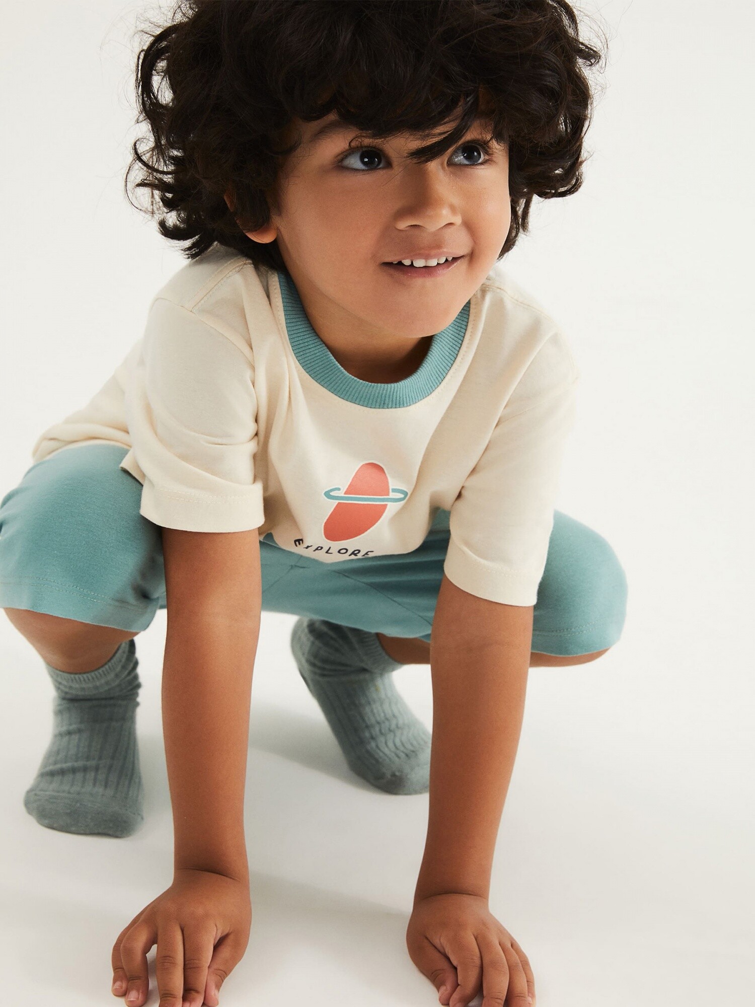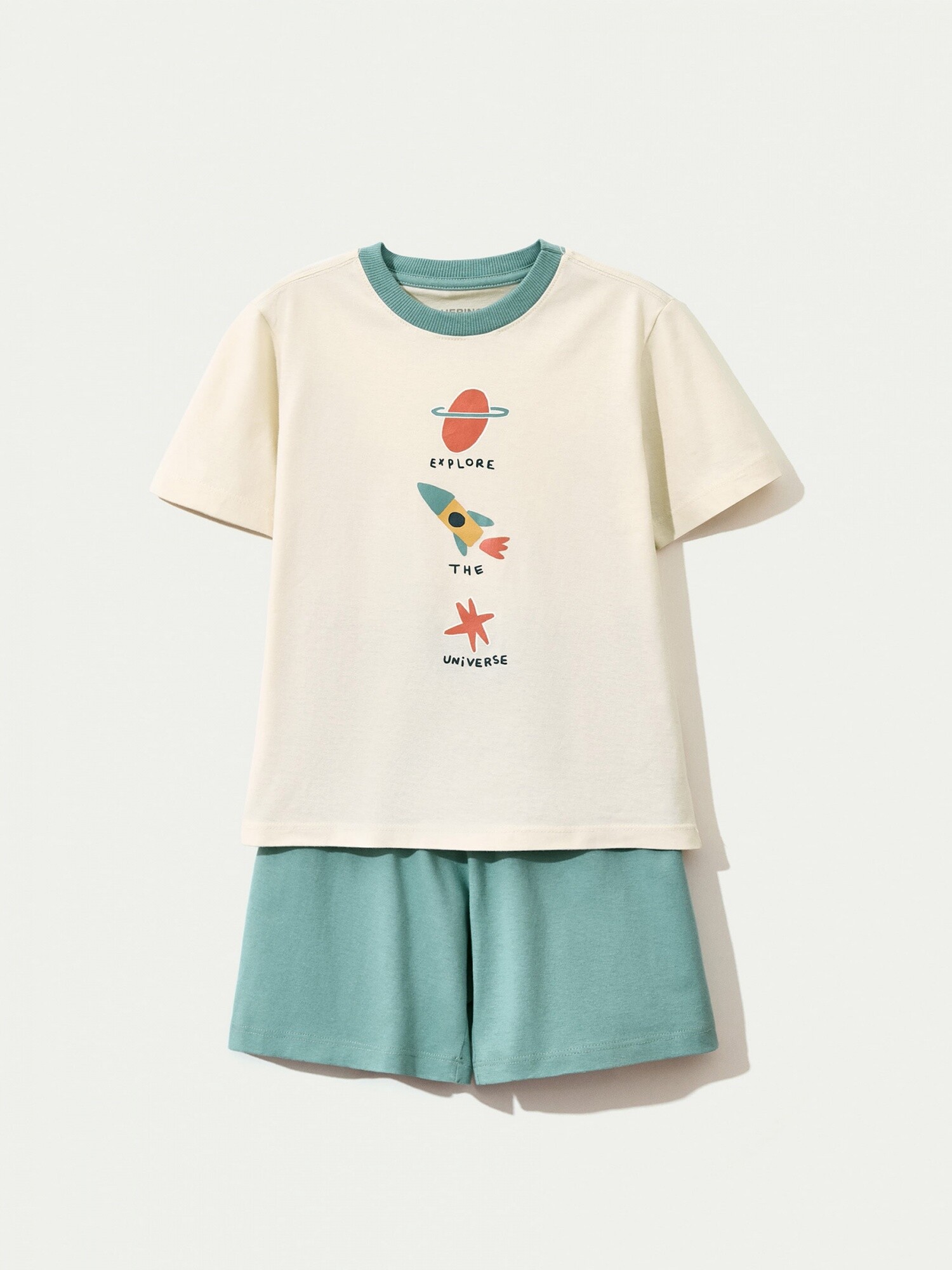 PIJAMA INFANTIL CON ESTAMPA Y BERMUDA - VERDE